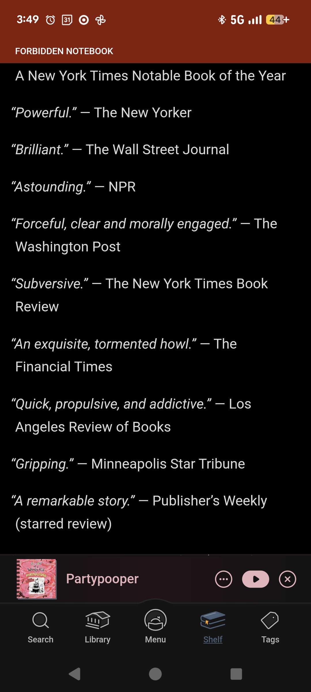 Currently “reading” (on Audible… couldn’t find it on Libby or Hoopla)