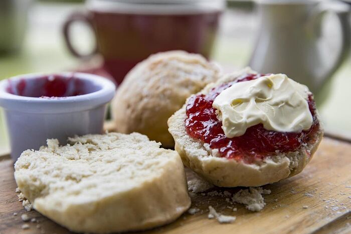 Somerset, where the show is set, isnt known for its cream teas - that would be nearby counties of Devon and Cornwall. But the obvious answer to your question is jam first - as anyone who has tried to spread jam onto cream will testify.
