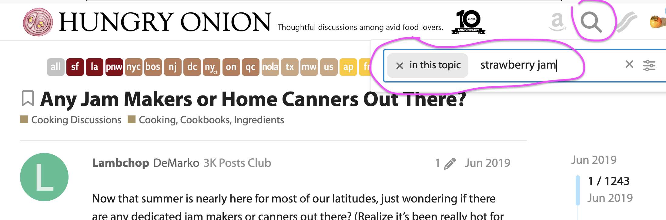 I put “strawberry jam” in the search function, which allows you to search all topics, or within one specific topic, which is what I did with the (admittedly rather lengthy) jam thread, and which is also how I discovered the 18 existing entries ![]()