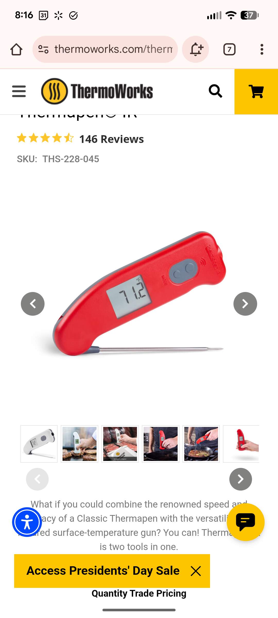 Thinking about this topic again today and randomly decided to check the Thermoworks site for the combo digital thermometer and infrared temp reader I love and use almost daily. They had discontinued it for some time but it’s back on their site now. Not cheap but really handy. The temp part is obvious. The infrared feature I use to check skillet/oven temps and have also used it to check temps coming out on our HVAC vents.