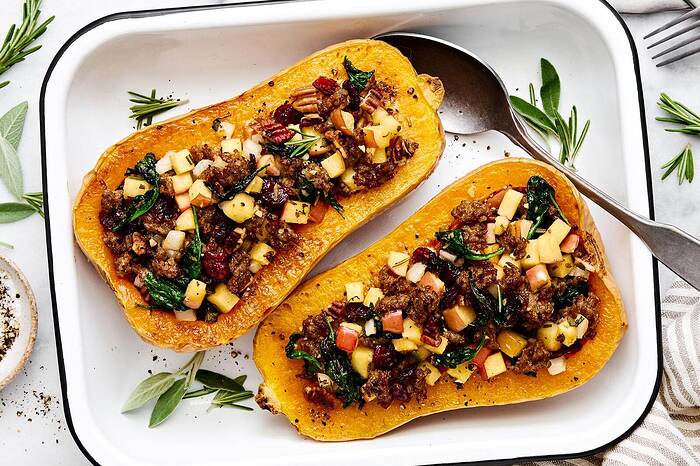 I’ve never stuffed a squash. Maybe I need to get some ideas here. Weirdly, my son was super afraid of butternut squash when he was a baby. If he saw one he would look terrified and burst into tears.