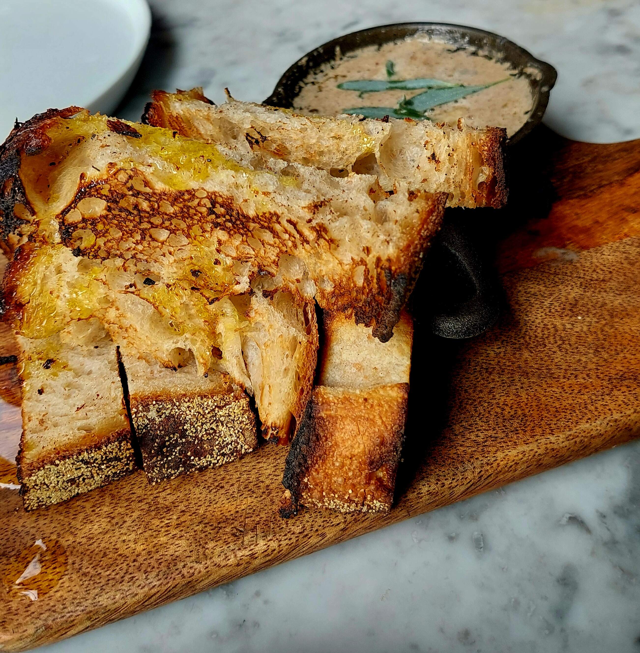 V simple at a local place for Mrs PB’s birthday. Recommended by the waiter and a great rec. Sourdough made on site with a shrimp and sage butter.