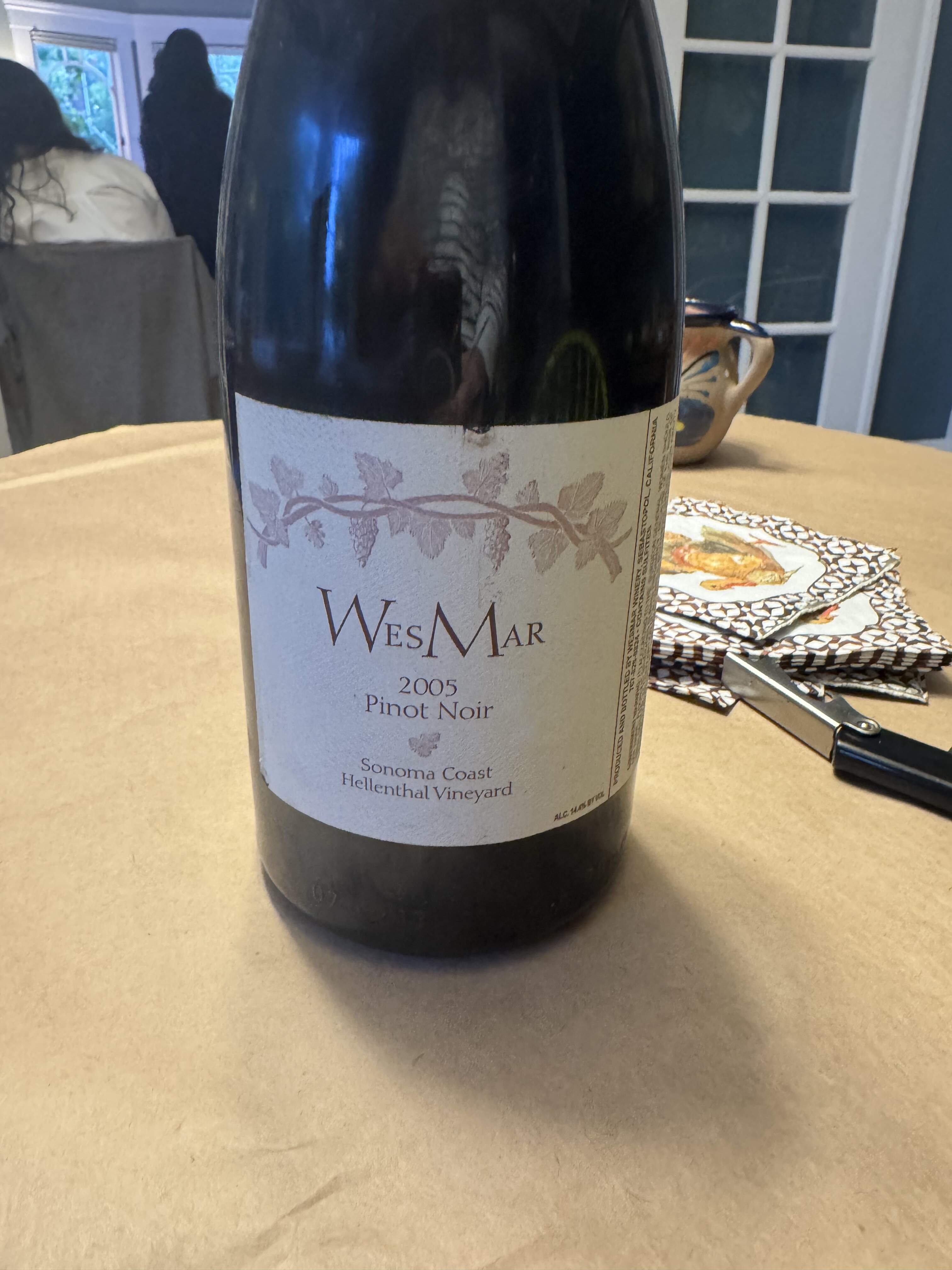 Outstanding pinot, from one of my favorite producers (unfortunately no longer around). Founded by the daughter of one of the Williams Selyem founders, Wesmar had a particular unique style of pinots, delicate and focused on red fruits. Hellenthal Vineyard was their most complex, with light raspberry and strawberry flavors, and a bountiful layered spicing on the long finish. I bought this magnum about 18 years ago and it was as fresh as could be. The cork was super crumbly though, so glad I opened it today.