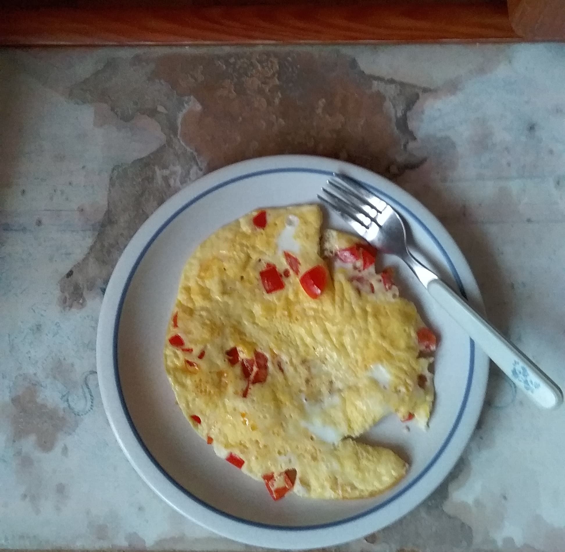 We’re off from school today for Rosh Hashanah, so I got to sleep in all the way 'til 6:15! Got today’s workout in and treated myself to a 2 egg omelet filled with broccoli, cauliflower, and cheddar. Some smoked paprika and black pepper over the top. Not my prettiest omelet, but it hit the spot! BF made coffee, which was very welcome, as well!