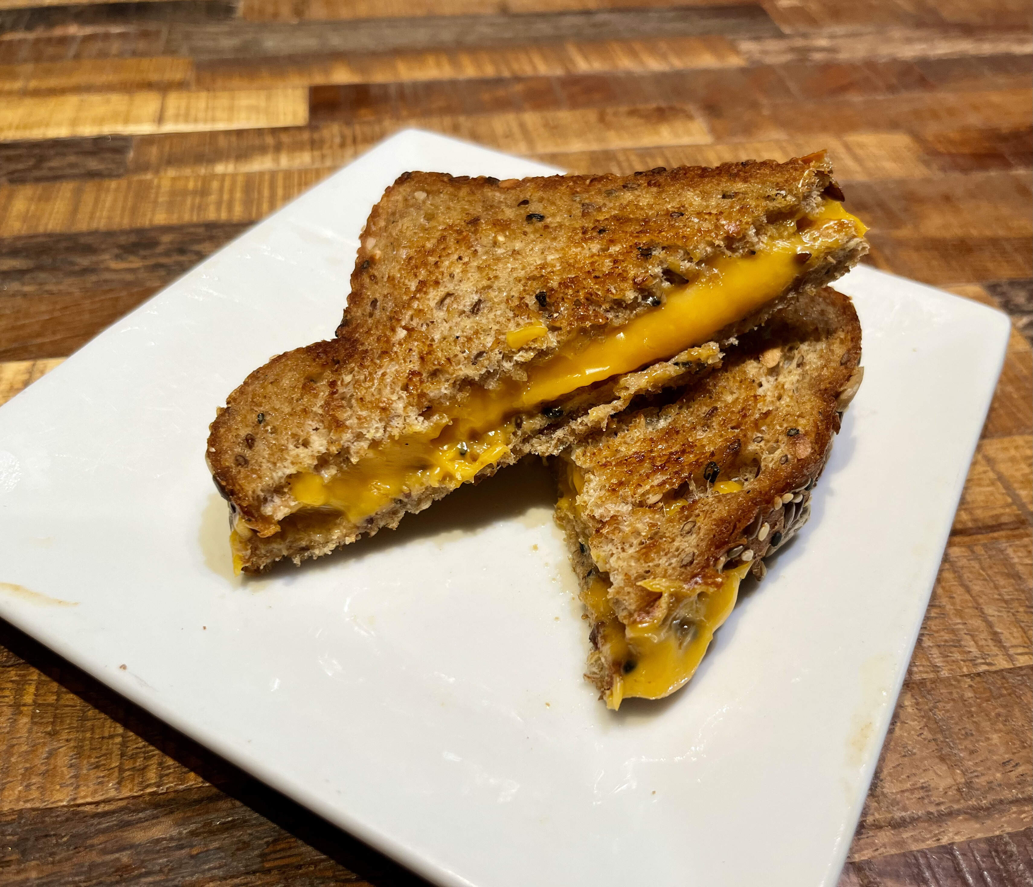 Grilled cheese with sharp American on Dave’s seedy bread.