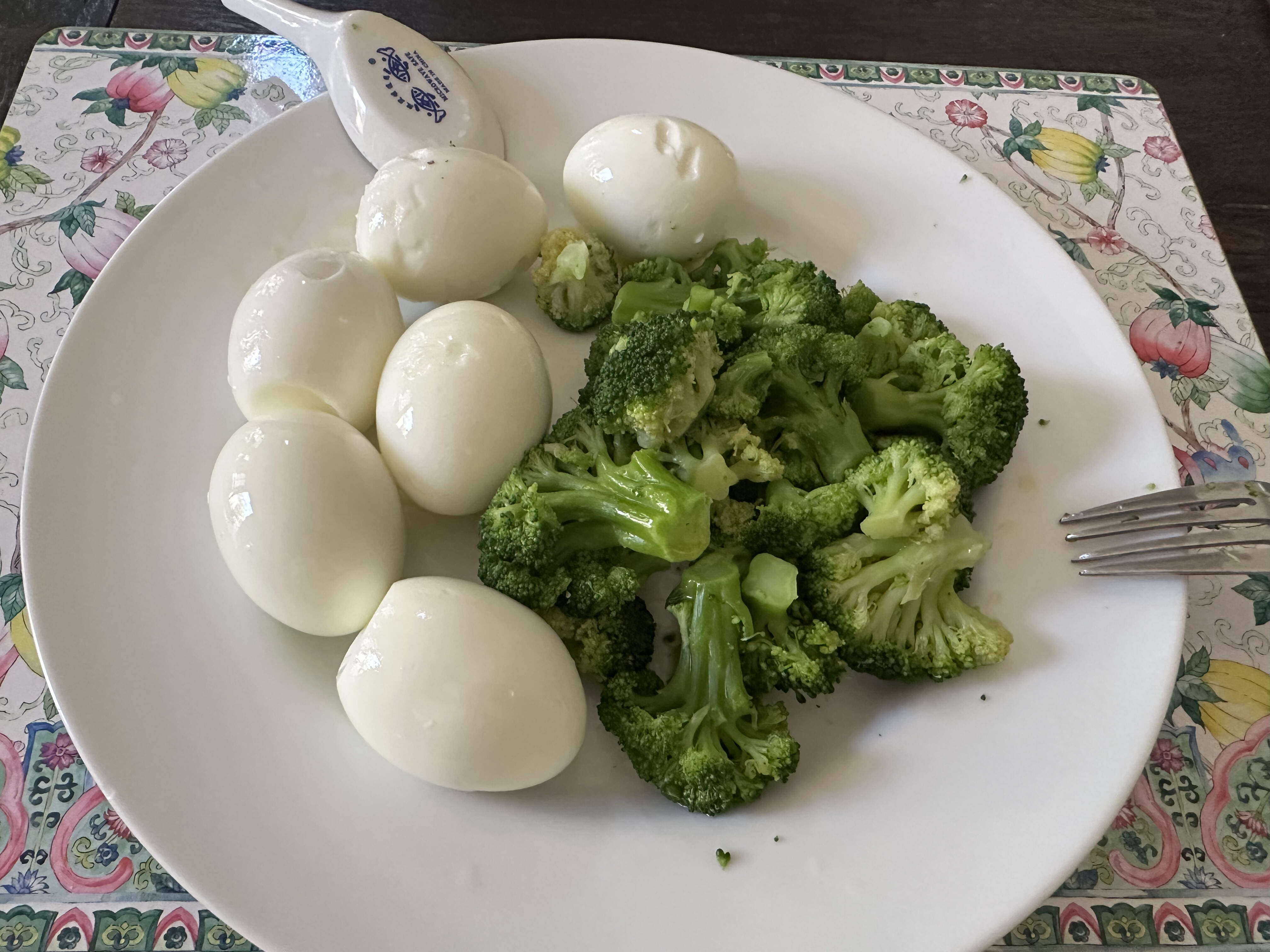 There was more crust than topping, and — while serviceable, TJ’s crust def ain’t good enuff to eat the bonez au nature. Mo bettah with dippy eggses.