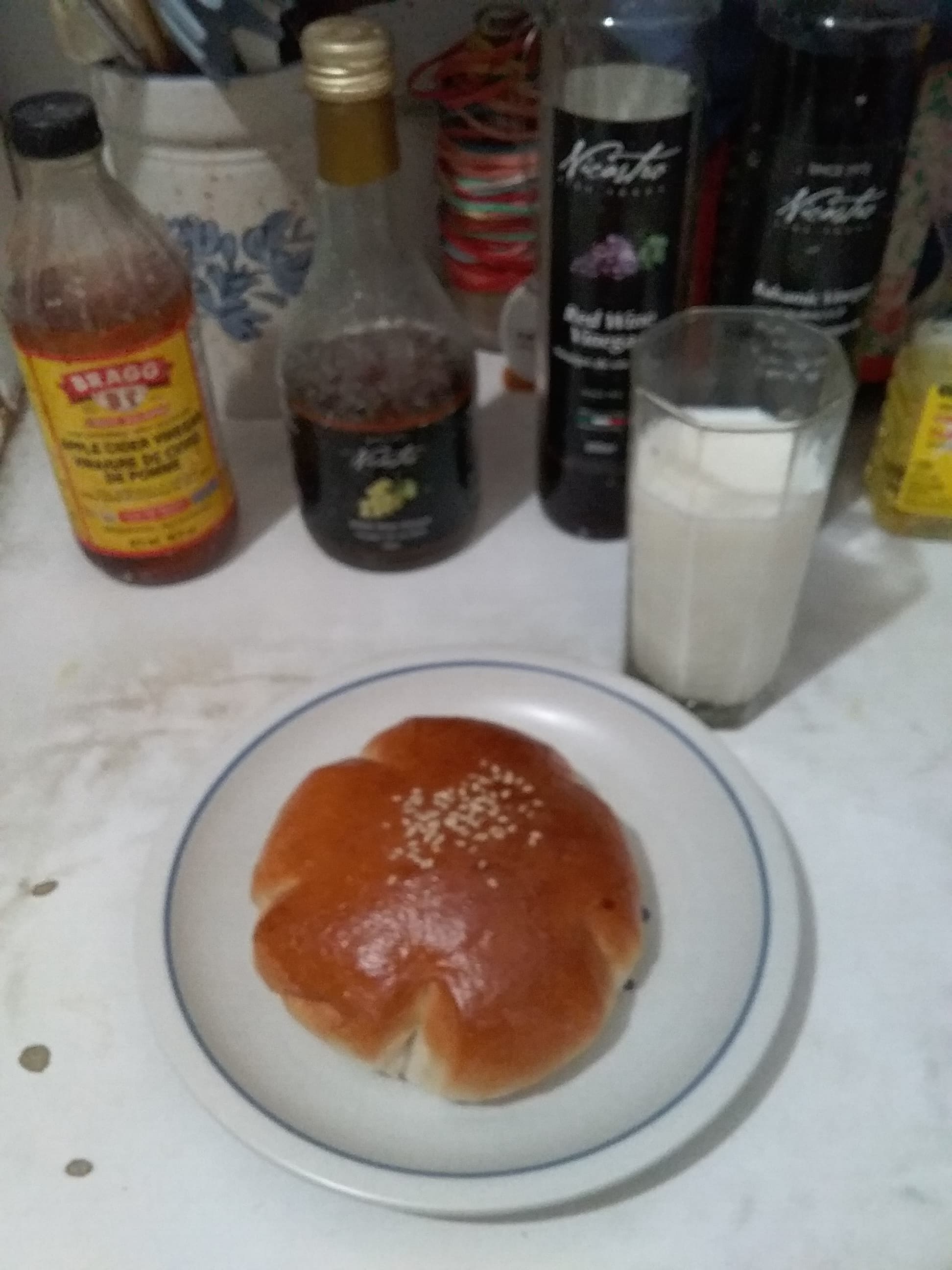 This morning’s breakfast was another one of my treats from yesterday’s trip to Chinatown - a red bean bun.