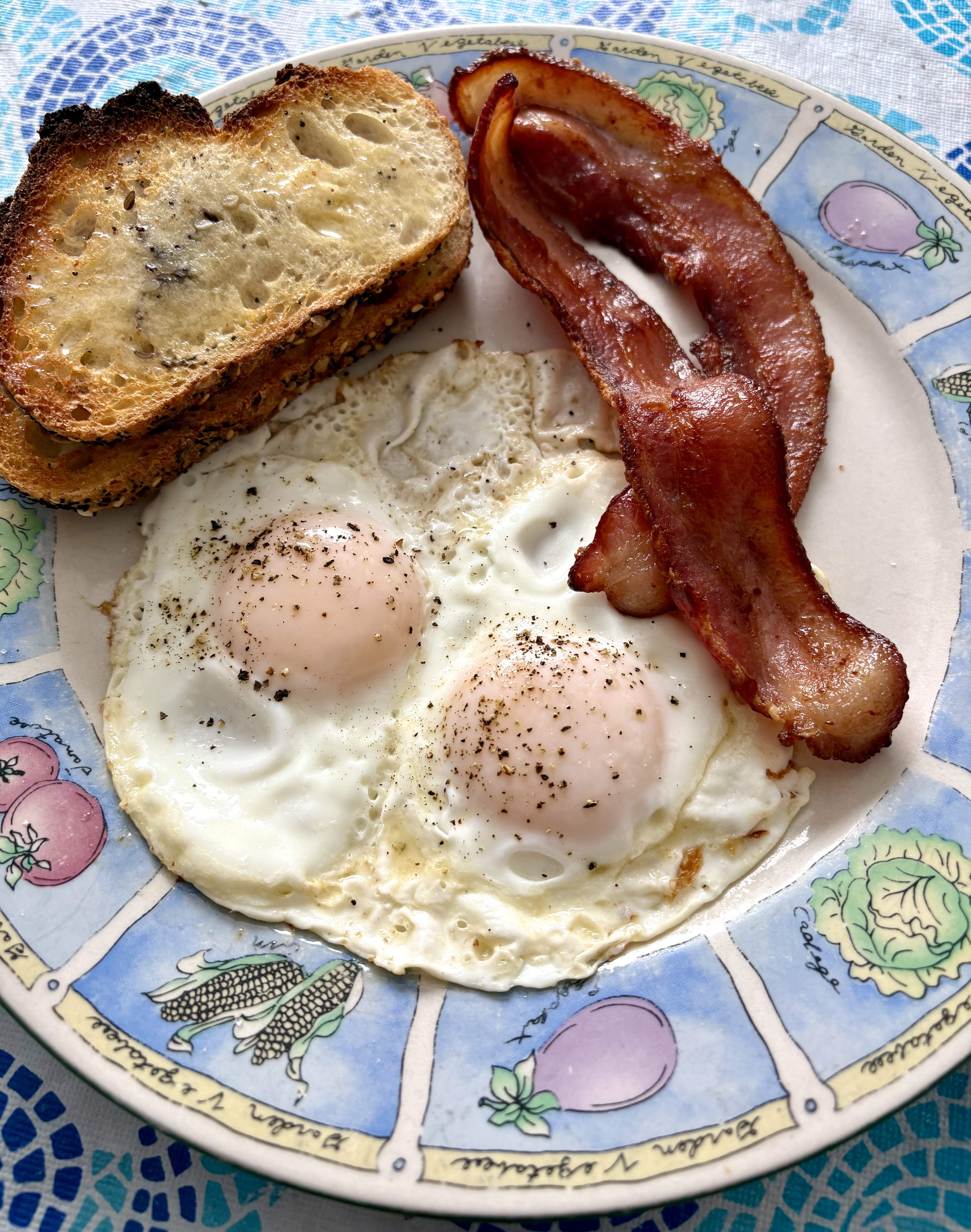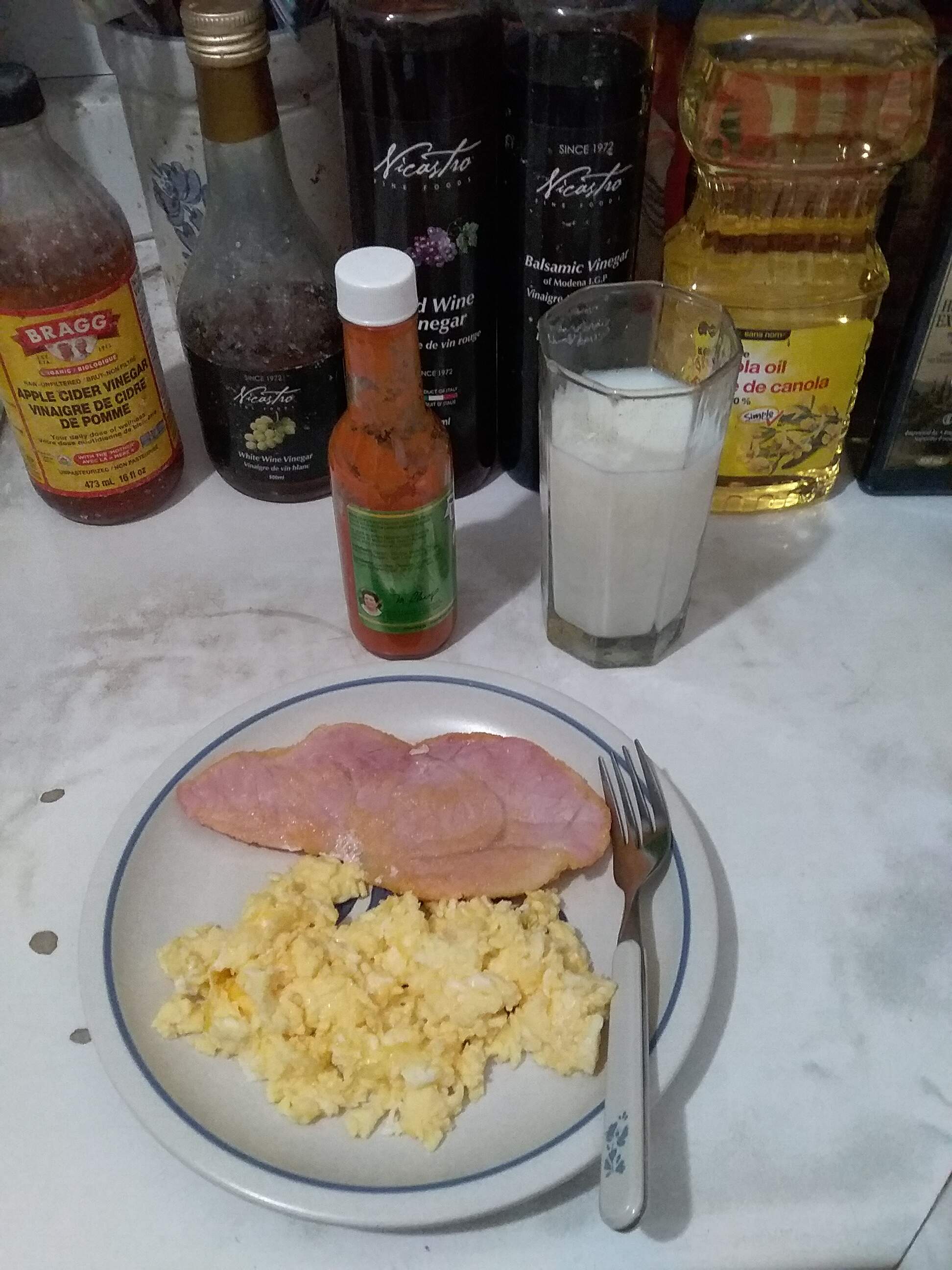 Breakfast this morning included scrambled eggs and peameal bacon with a lil Marie Sharpe’s hot sauce on the side.