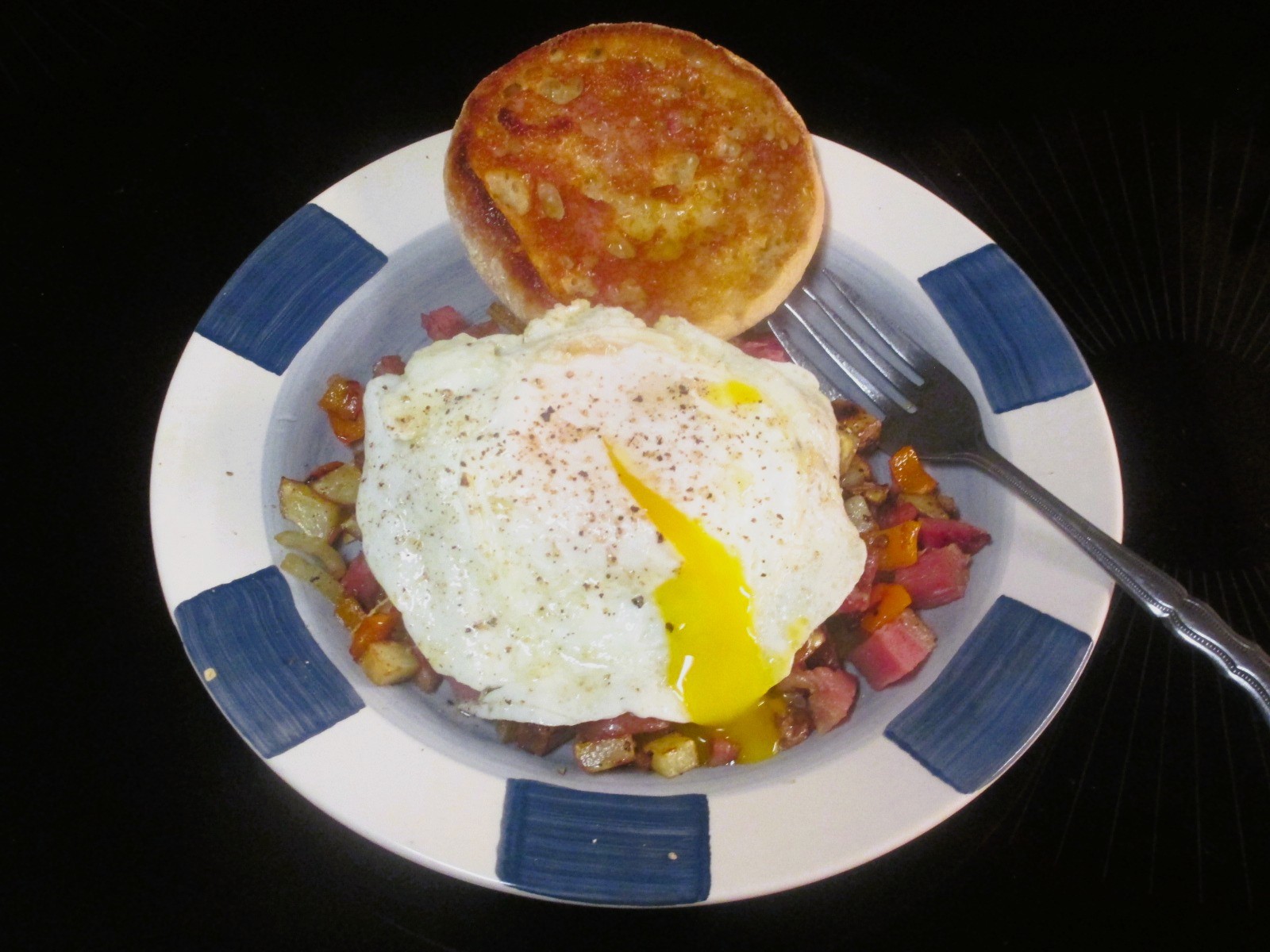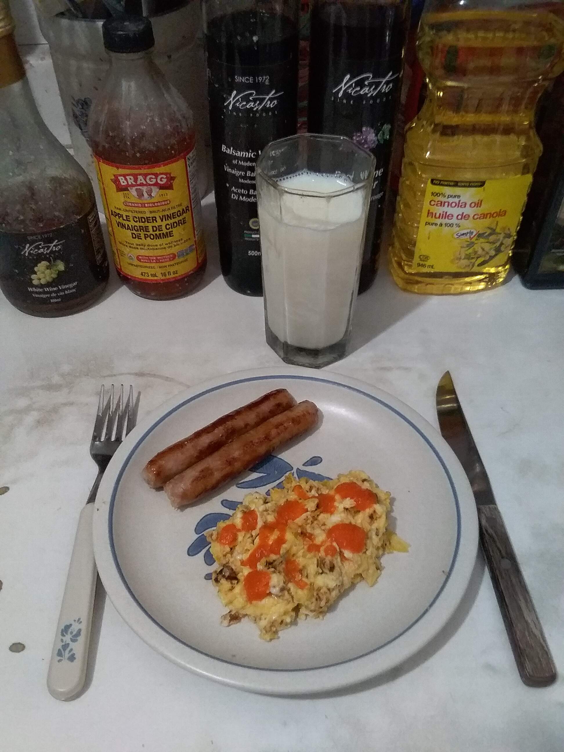 A well-deserved plate of various protein sources (eggs & ham) after my first gym visit in … FOUR months!!! ![]()