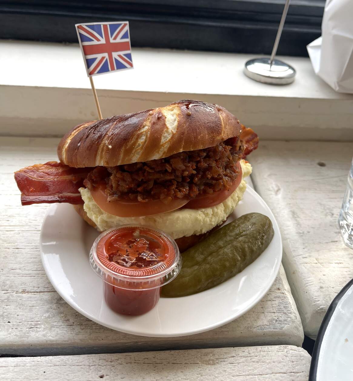 Totes cooked the yolks, so no luxurious Strammer Max for me. Justa failed ham, cheese & egg sammich.