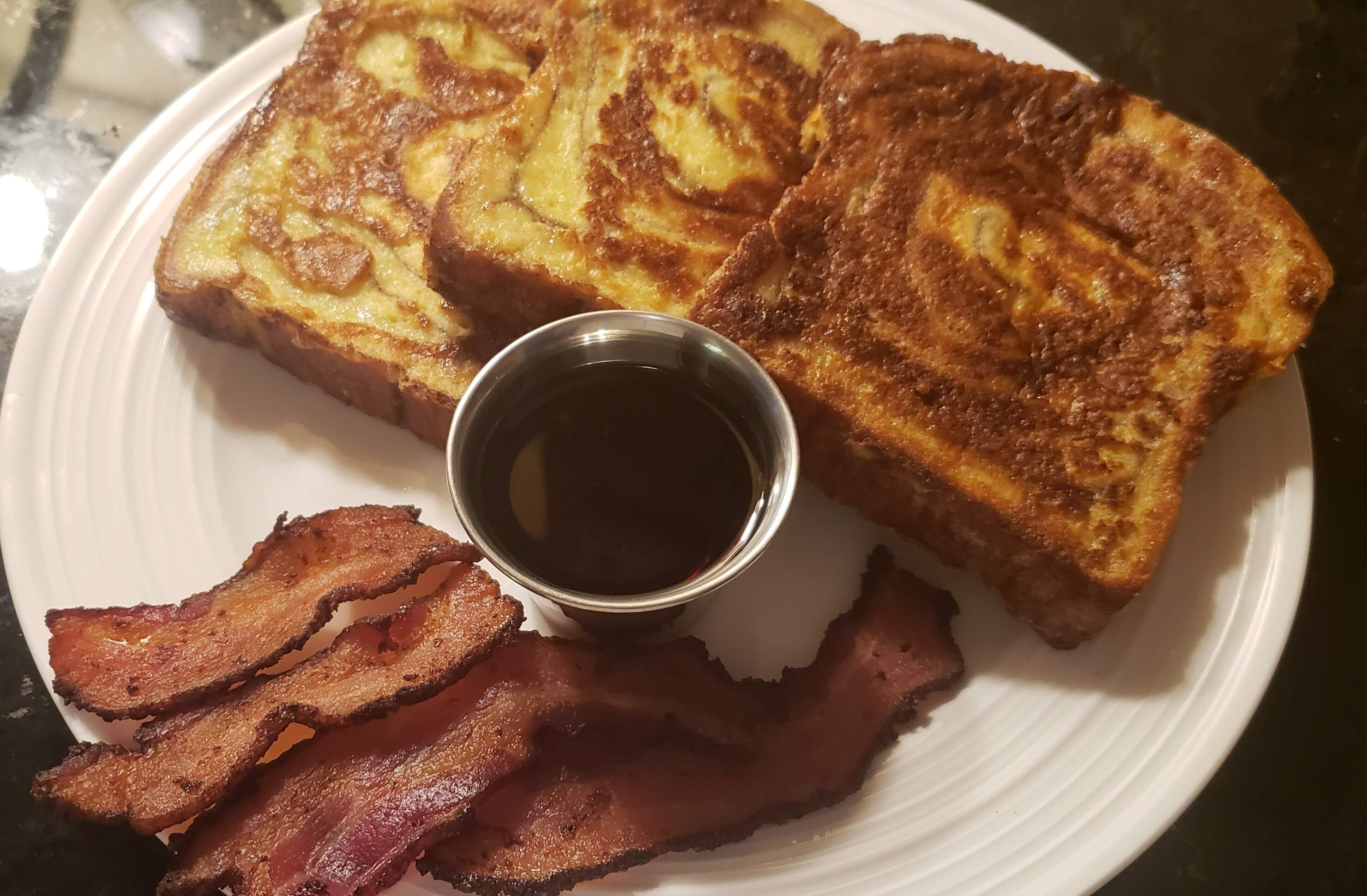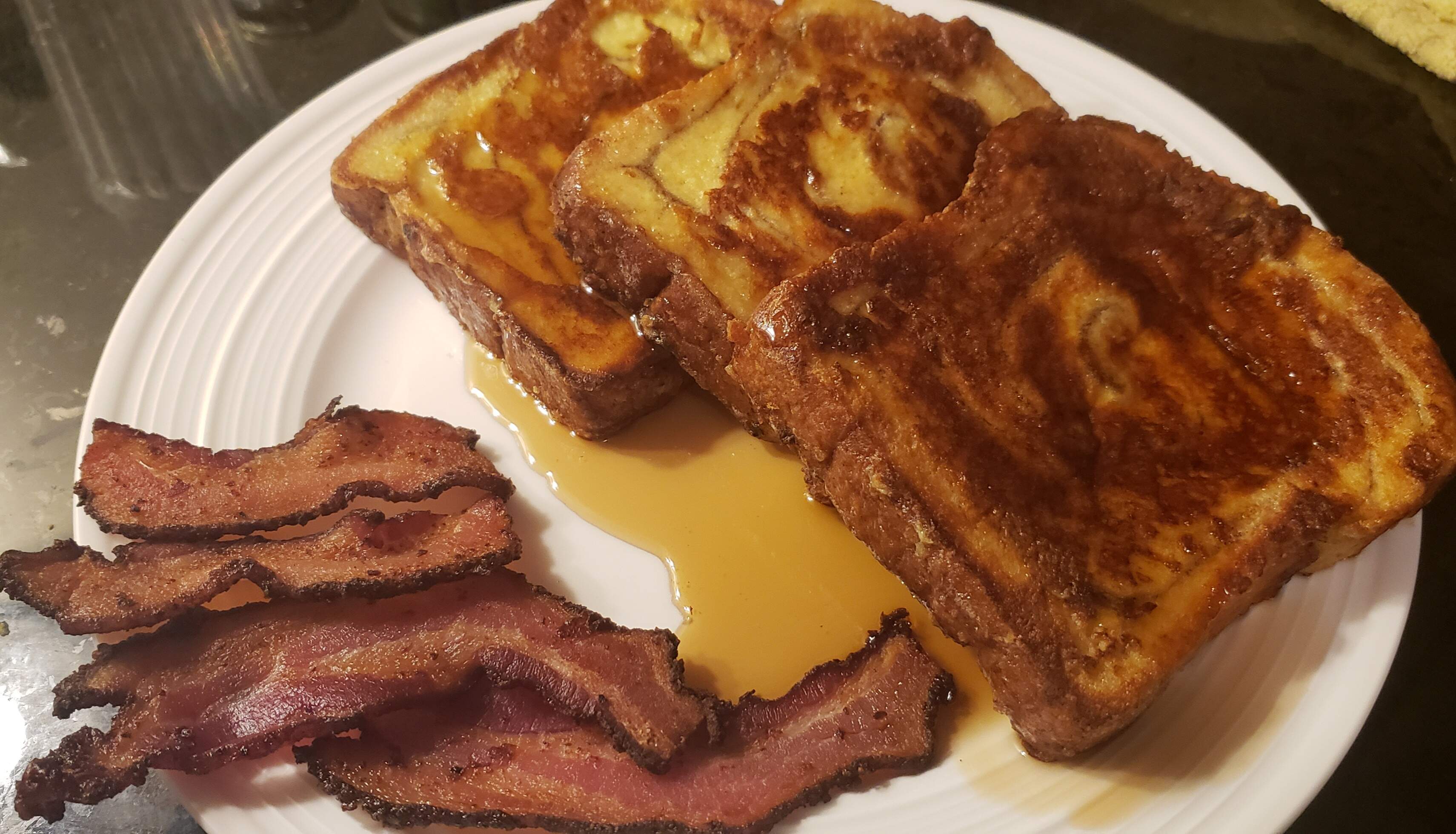 Thick French toast and thick bacon = thick me.