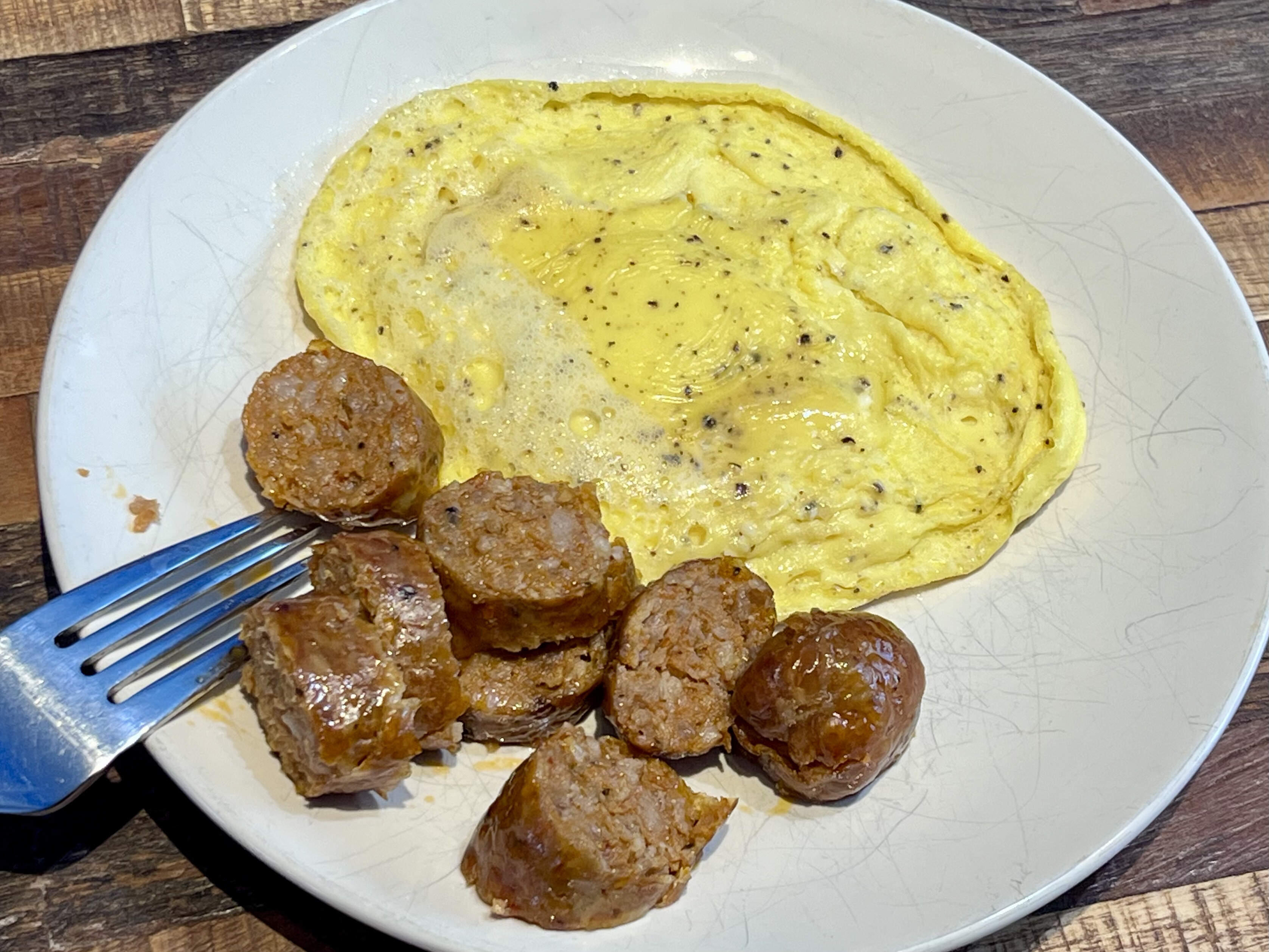 José Andres’ “magic” MW omelette. Came out more like an overcooked scramble, but was edible. The chorizo def elevated this breakfast, if not exactly to magical levels.