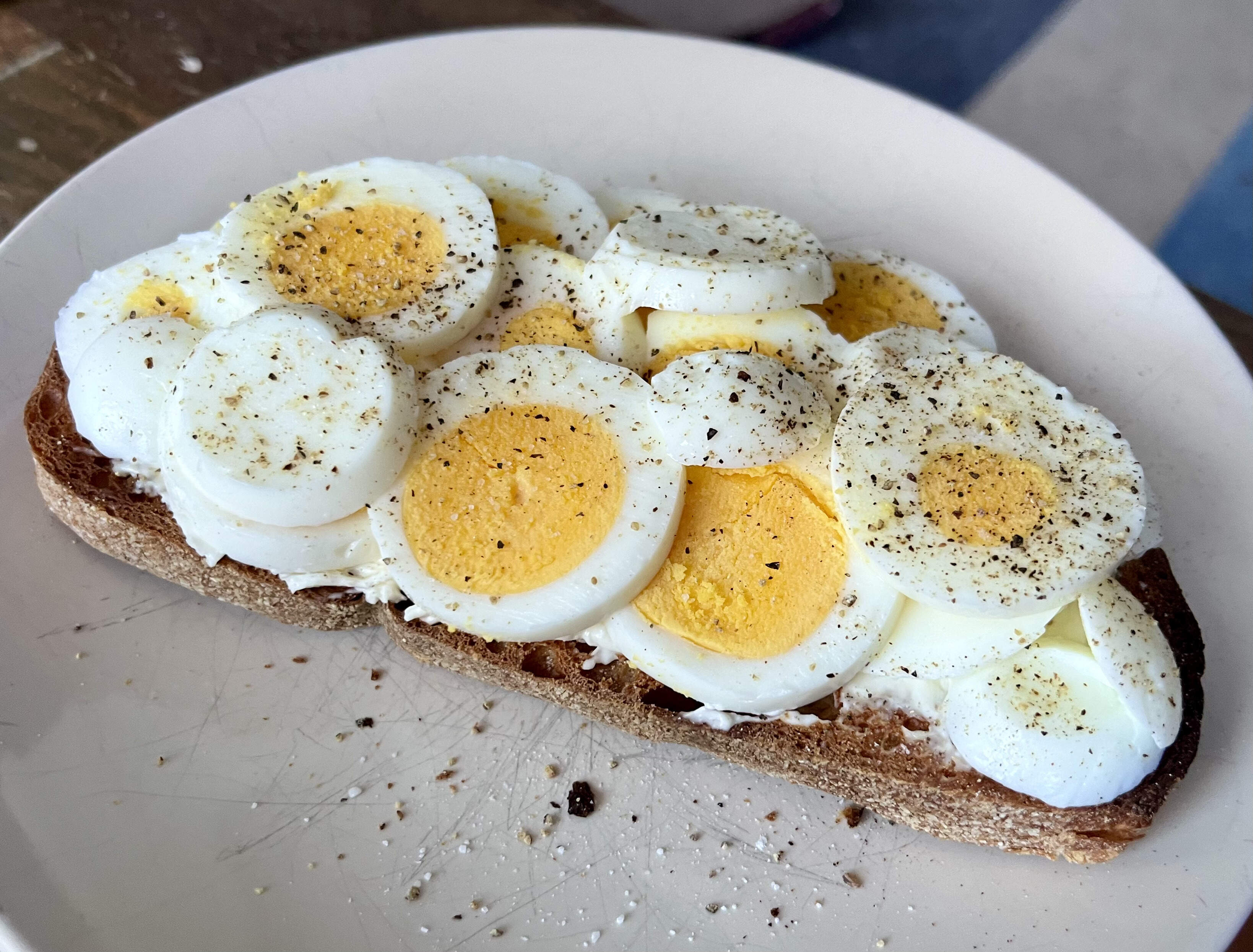 Scrambled eggs with Marie Sharpe’s hot sauce and peameal bacon from the pricey butcher. That bacon is far better than the grocery store varietal so I will change my peameal bacon purveyor.