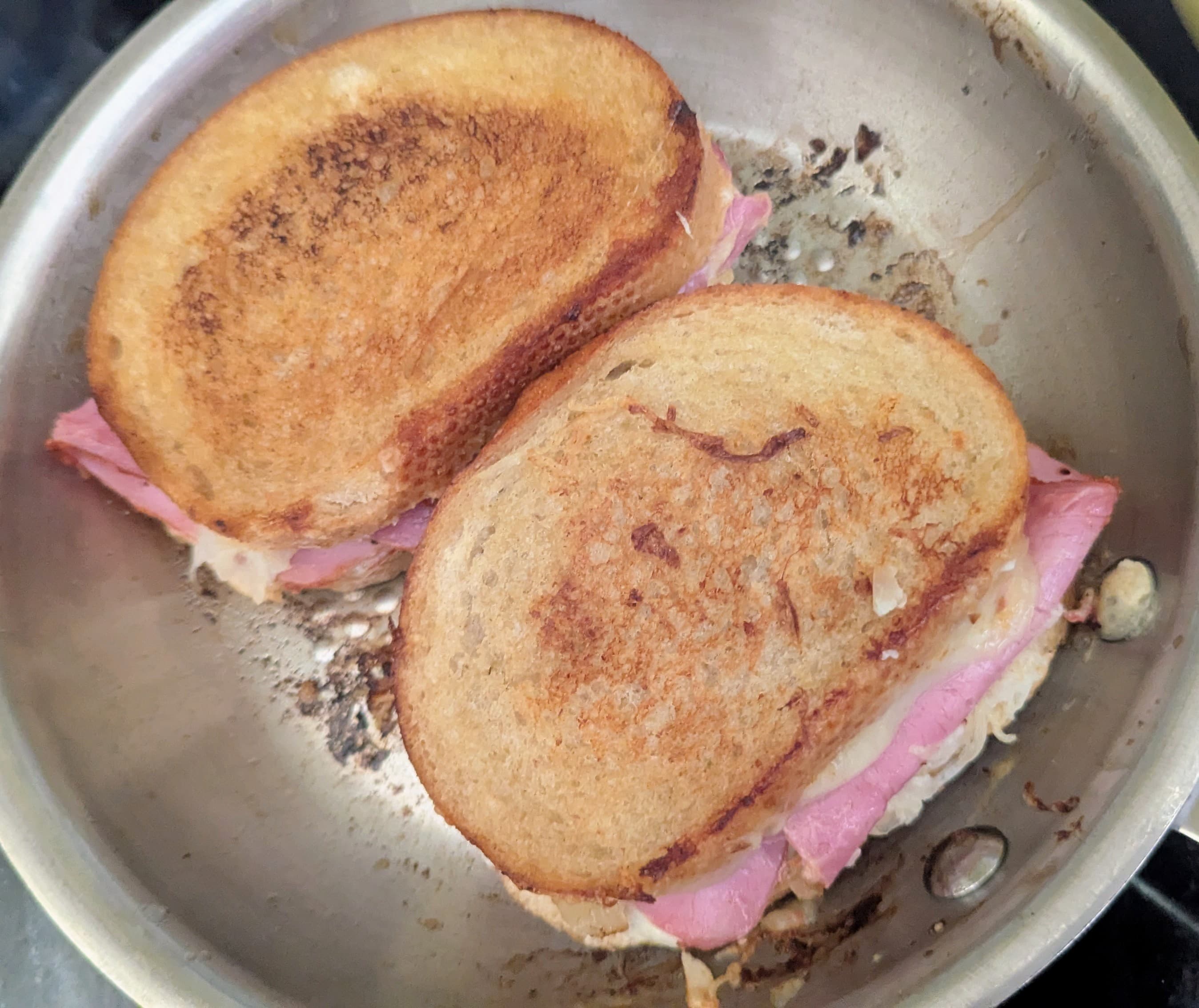 Paneer sandwich on toasted cheese bread, using some leftover tandoori paneer from last night’s take-out.