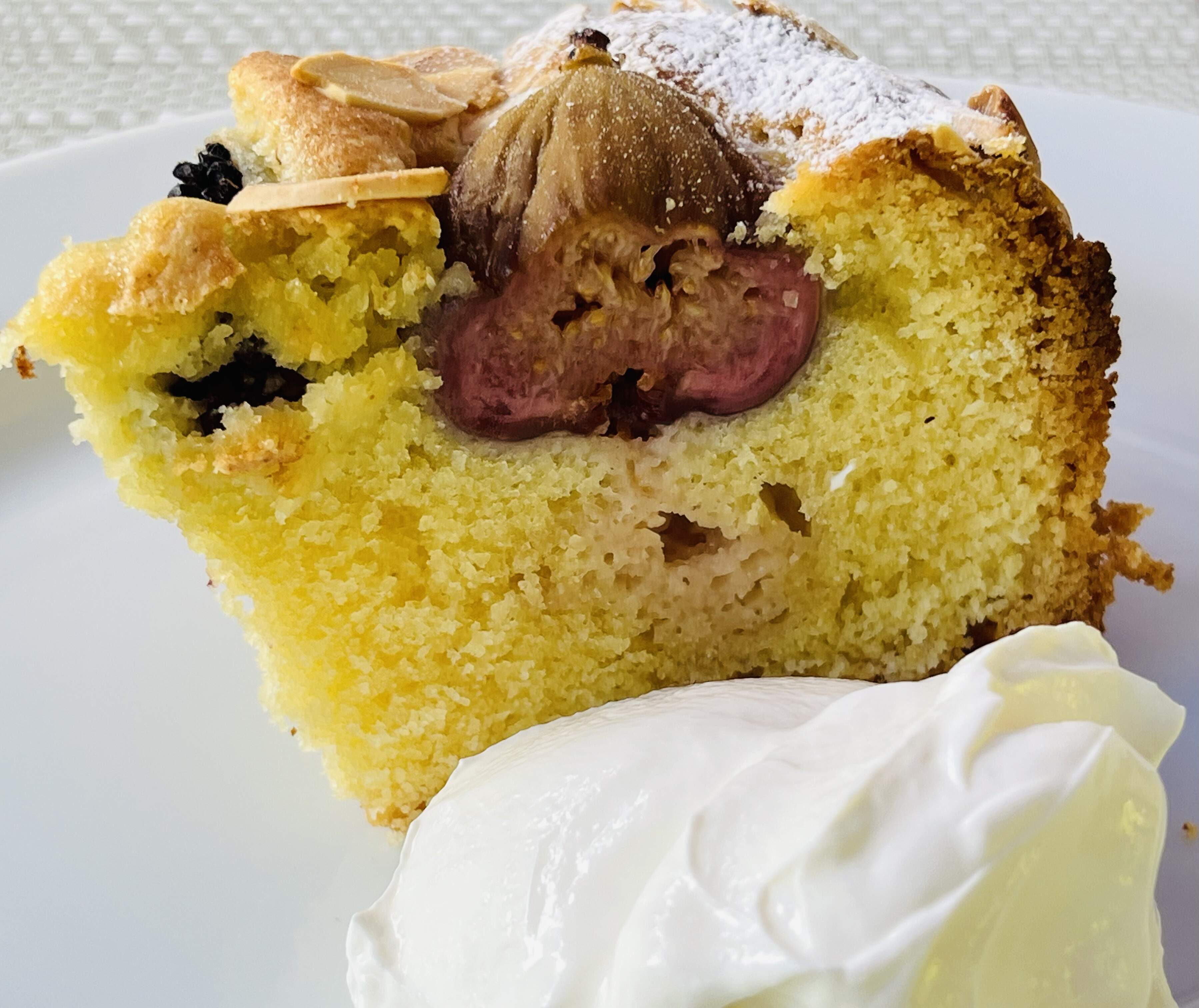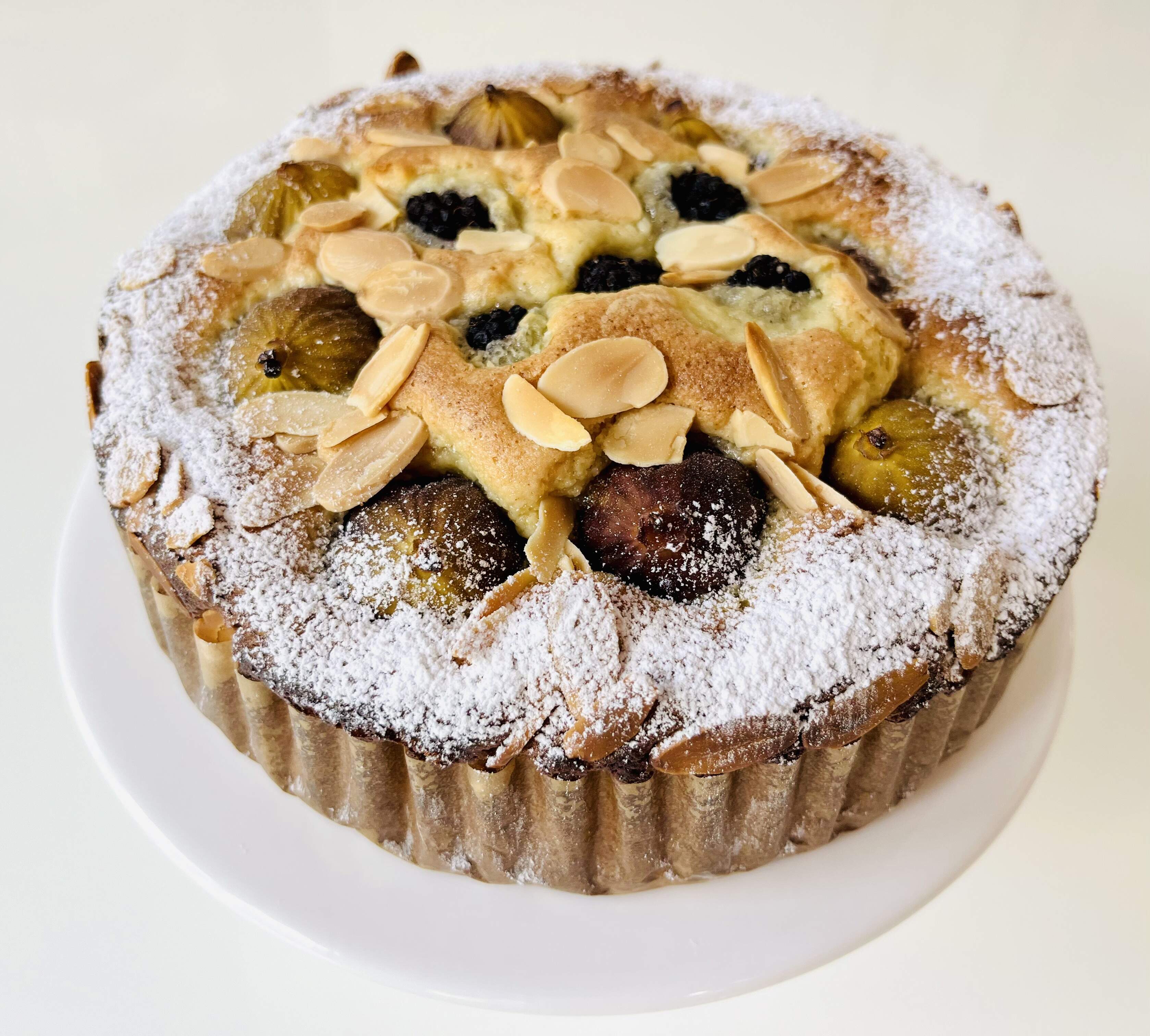 Not a figgy pudding, just a figgy cake, along with some blackberries to keep them company. I happened to purchase a container of smaller than usual figs which lent themselves to being used whole in the cake. They are delicious in the cake.