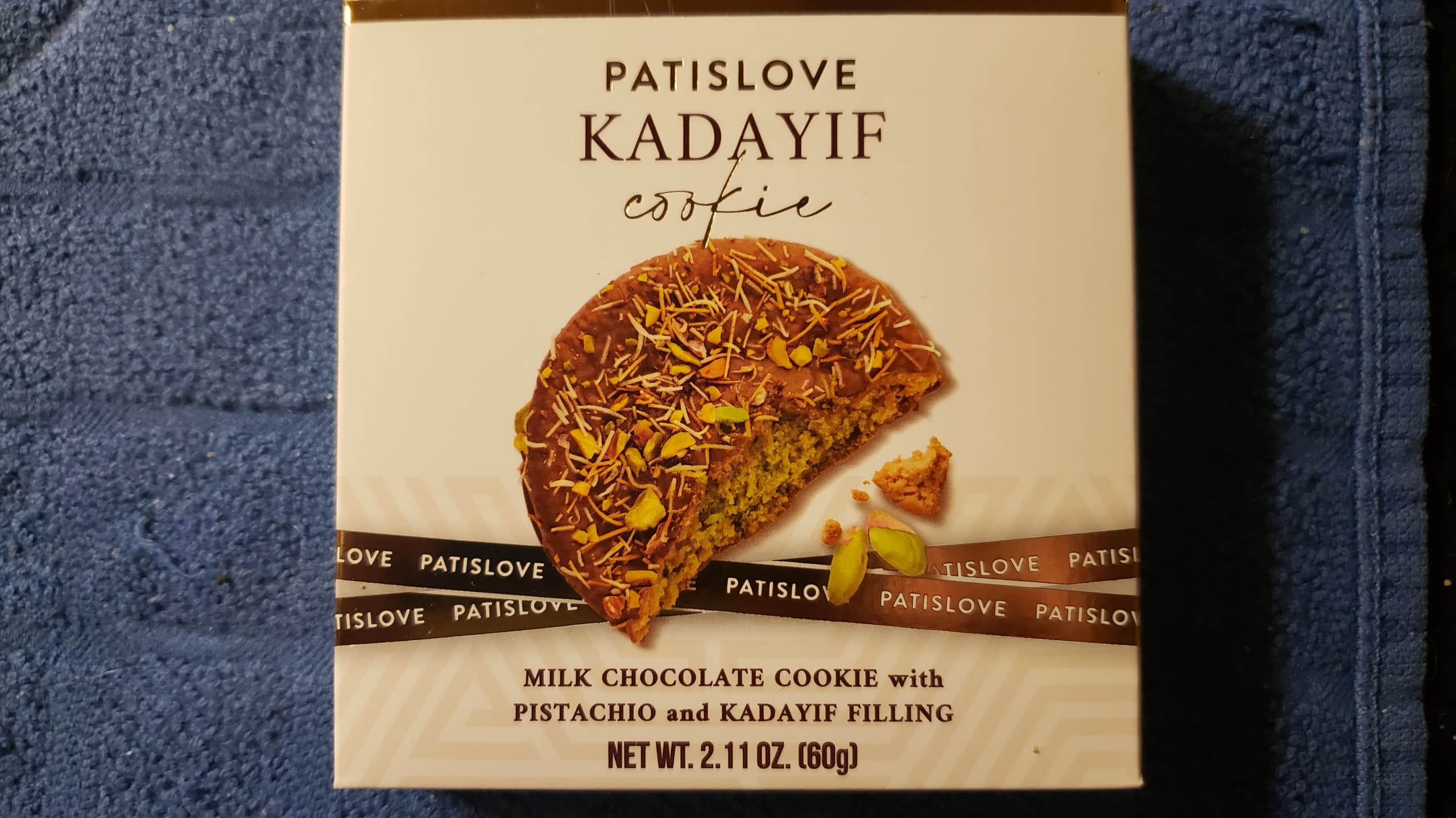 Half of this pistachio kadayif cookie. Purchased at World Market today. Good flavor and light crunch, not overly sweet. Would I spend $5.99 on the regular? Probably not. But a nice sweet after my dinner.
