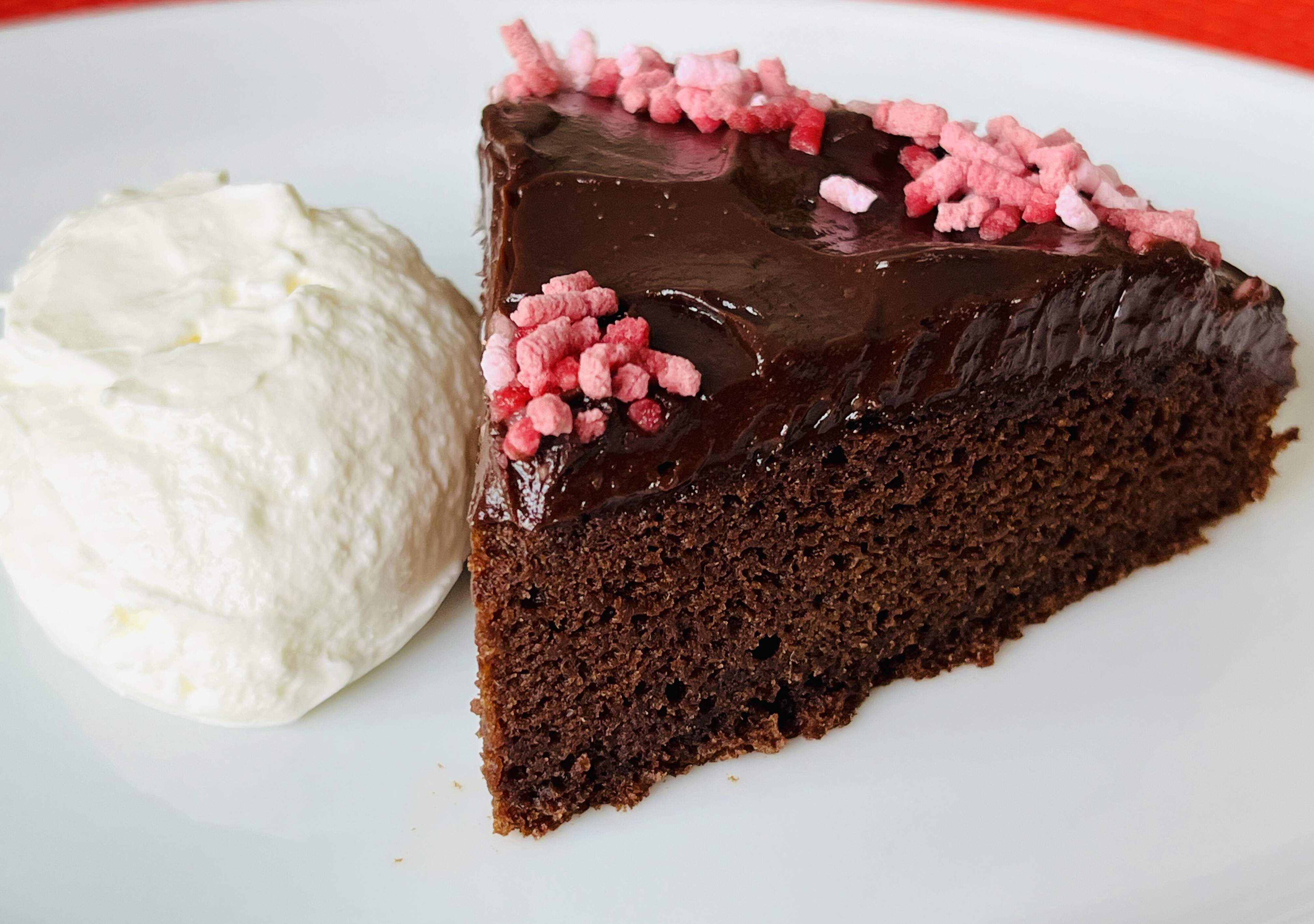 The cake had cocoa and the glaze had 54% chocolate. I usually put chunked up chocolate in the cake but I didn’t this time and I missed it.