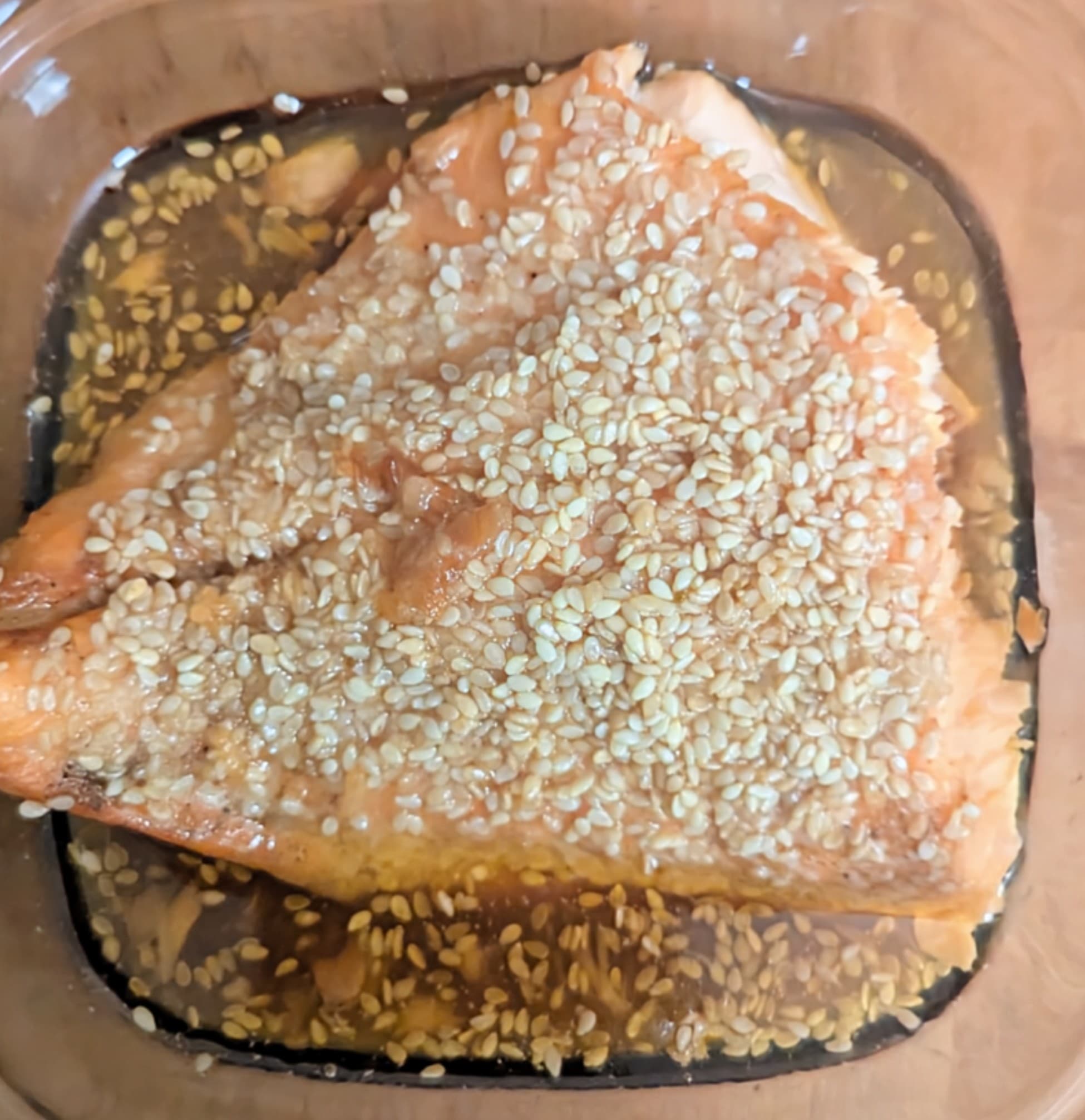 I made a new recipe, a maple and garam masala Arctic char. Here are the leftovers. LOL