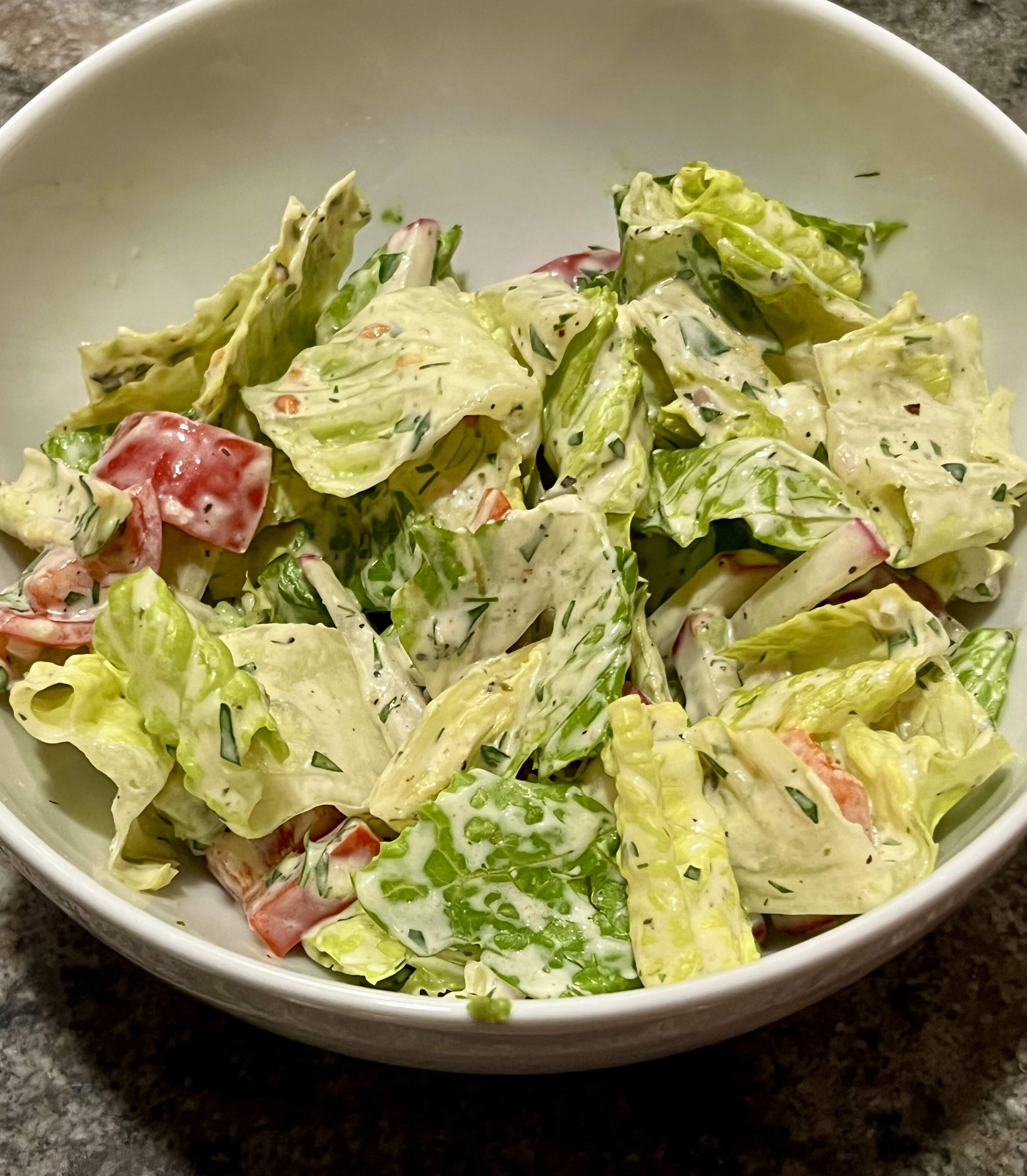 Side was buttered corn with parsley & smoked hot peppers from a friend, plus a simple salad of romaine, tomatoes, radishes, red peppers, avocado, in a buttermilk ranch dressing.