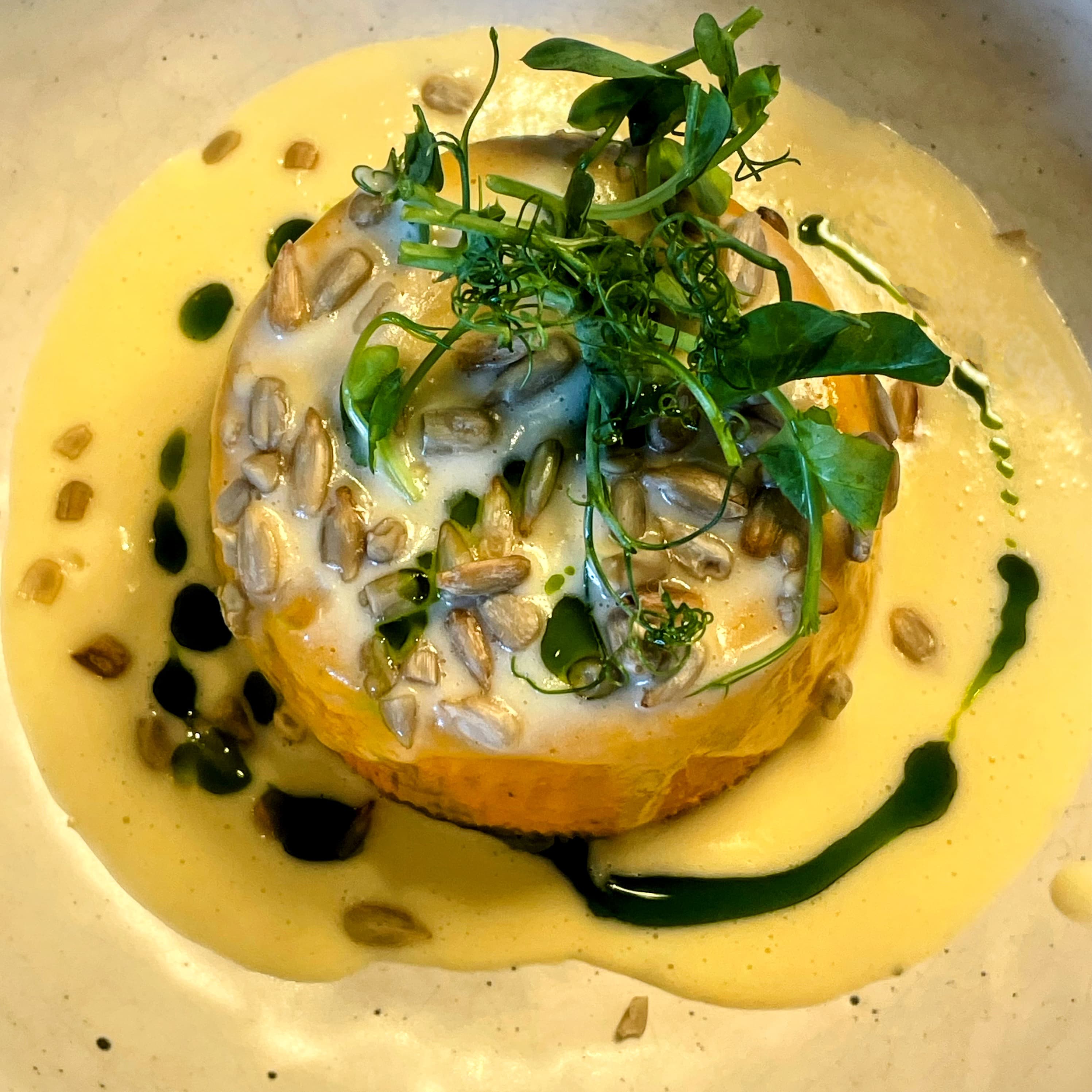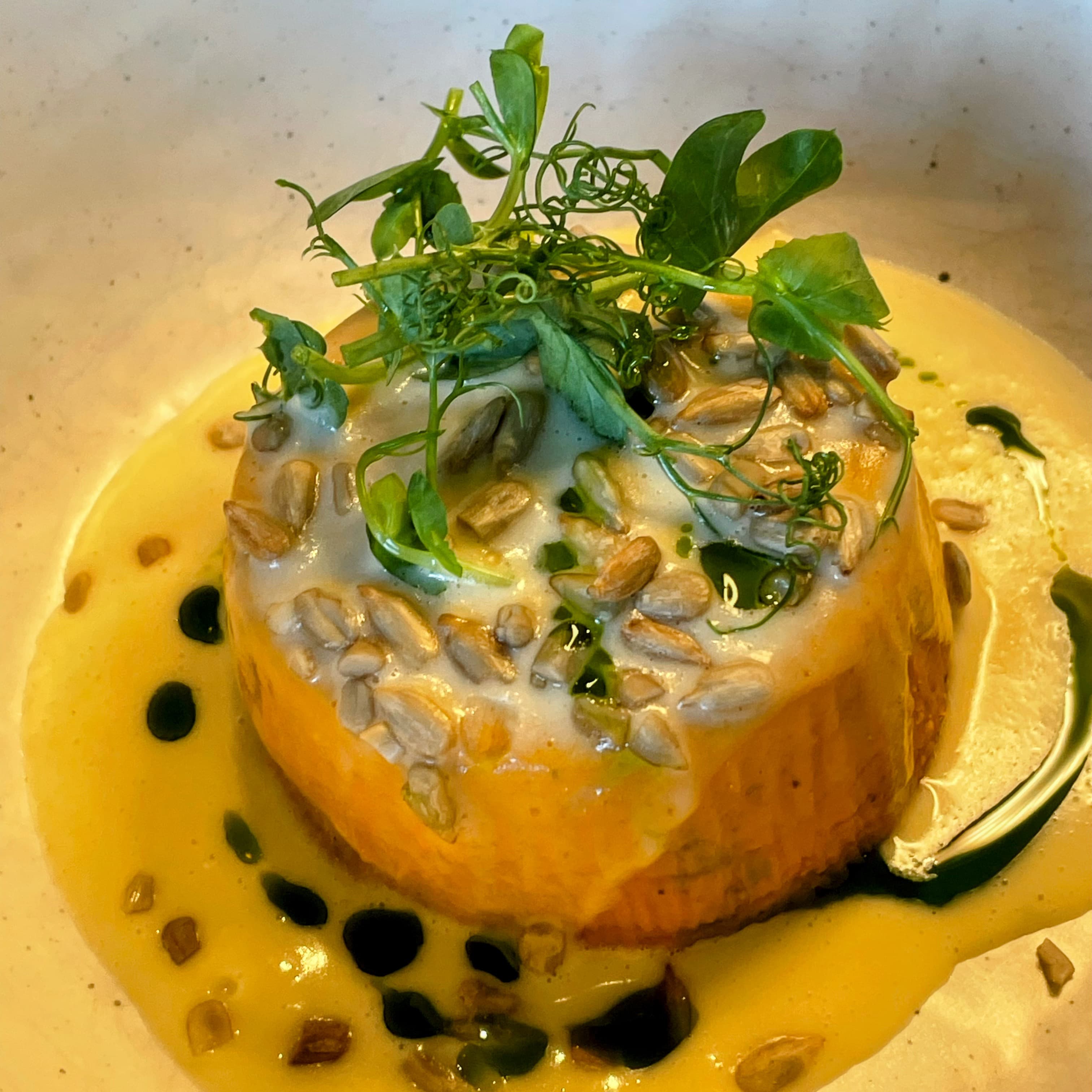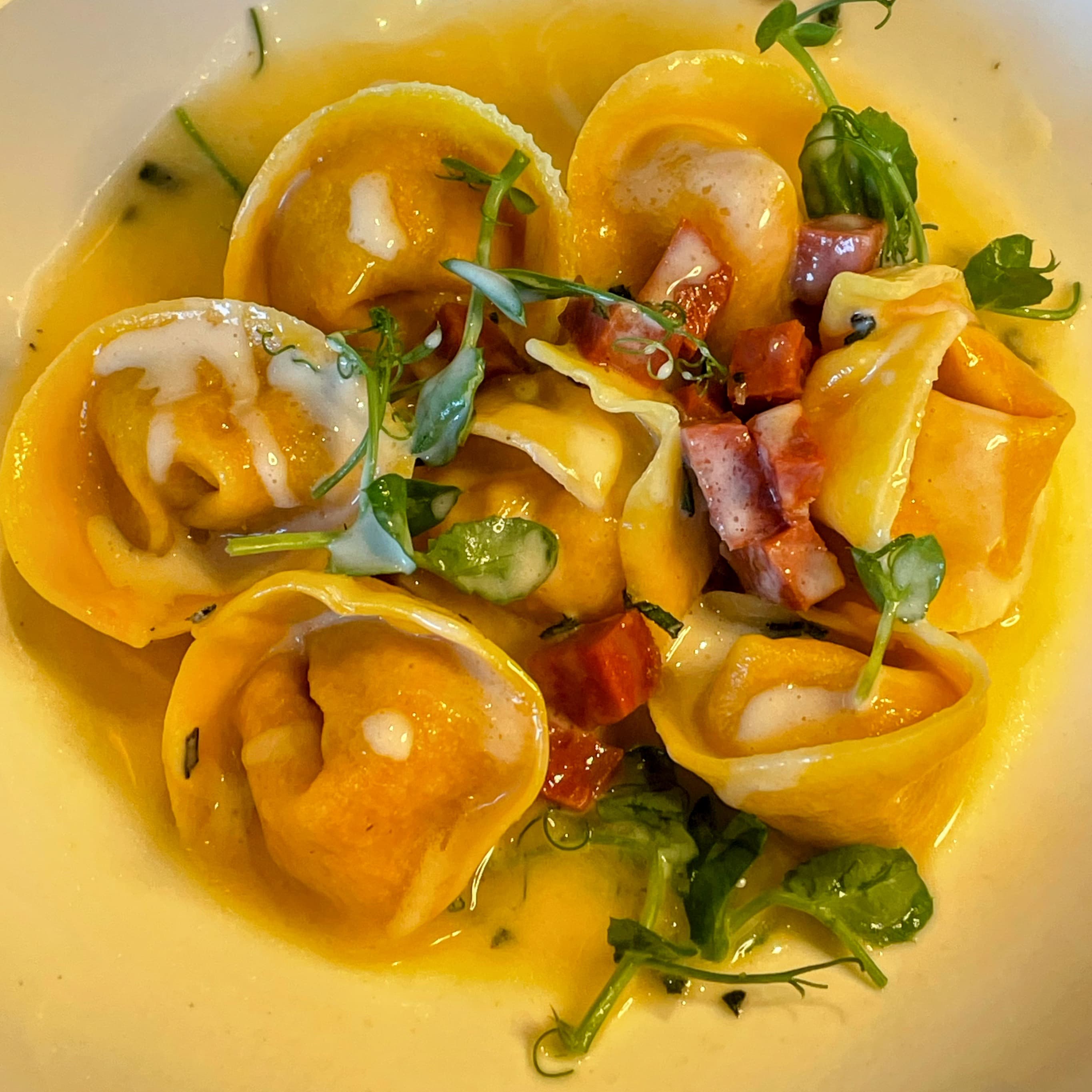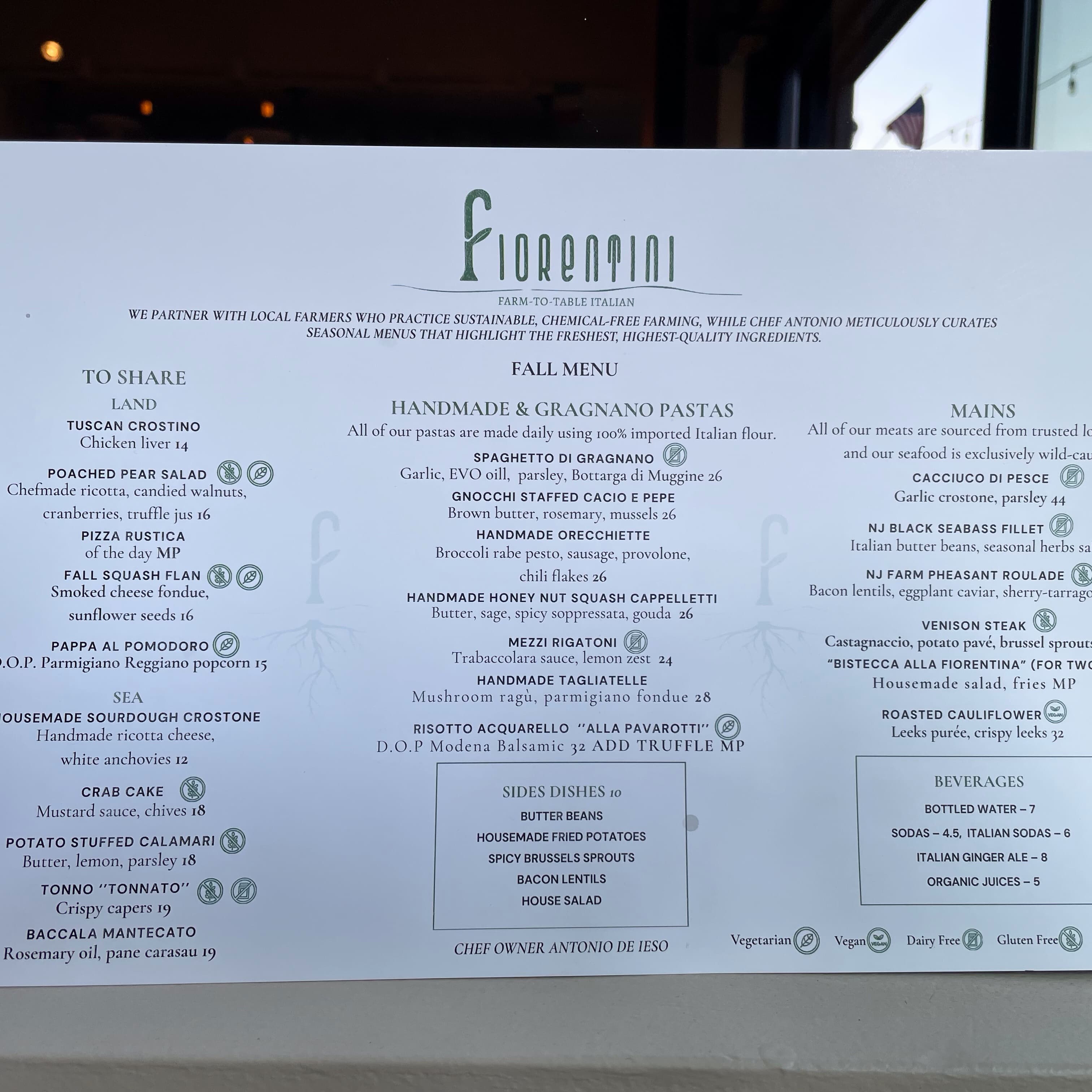 We enjoyed the new Fall menu at Fiorentini in Rutherford, NJ, including an excellent Fall squash flan with smoked cheese fondue and sunflower seeds; honeynut squash cappelletti with butter, sage, and spicy soppressata, and gouda; venison; black bass with a citrusy herb salad; cacio e pepe stuffed gnocchi with mussels. It all went great with an excellent red blend and cabernet.