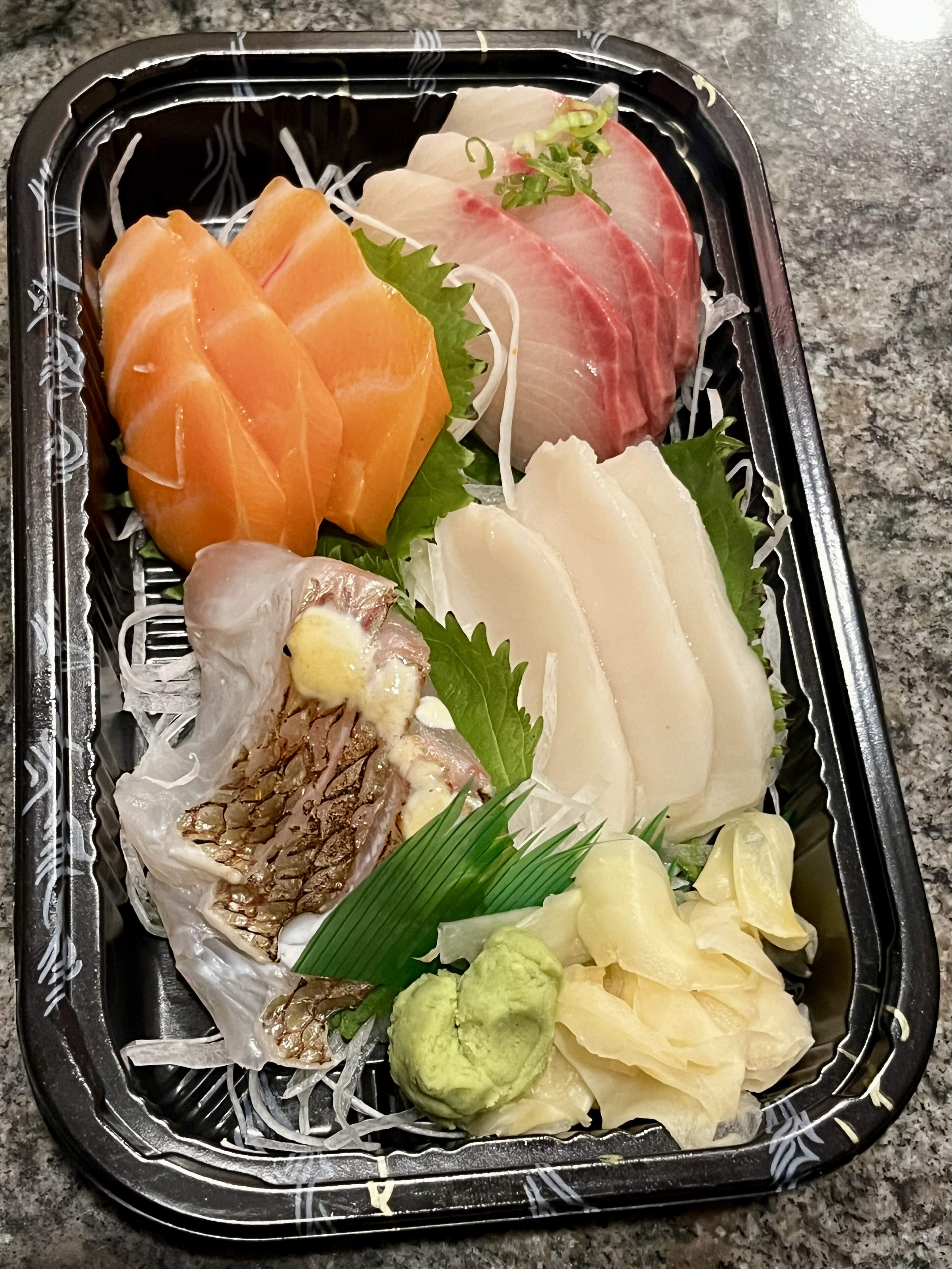 Instead, we ordered some takeout sashimi with a side order of rice,
