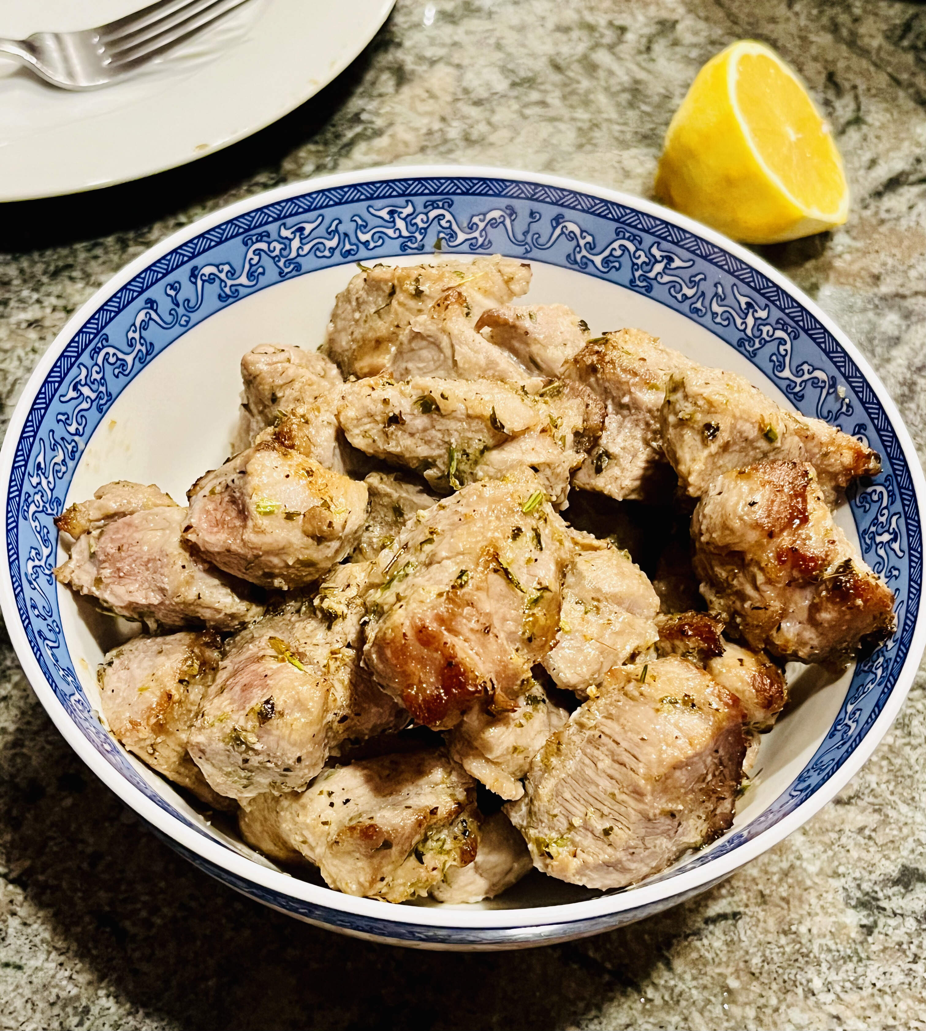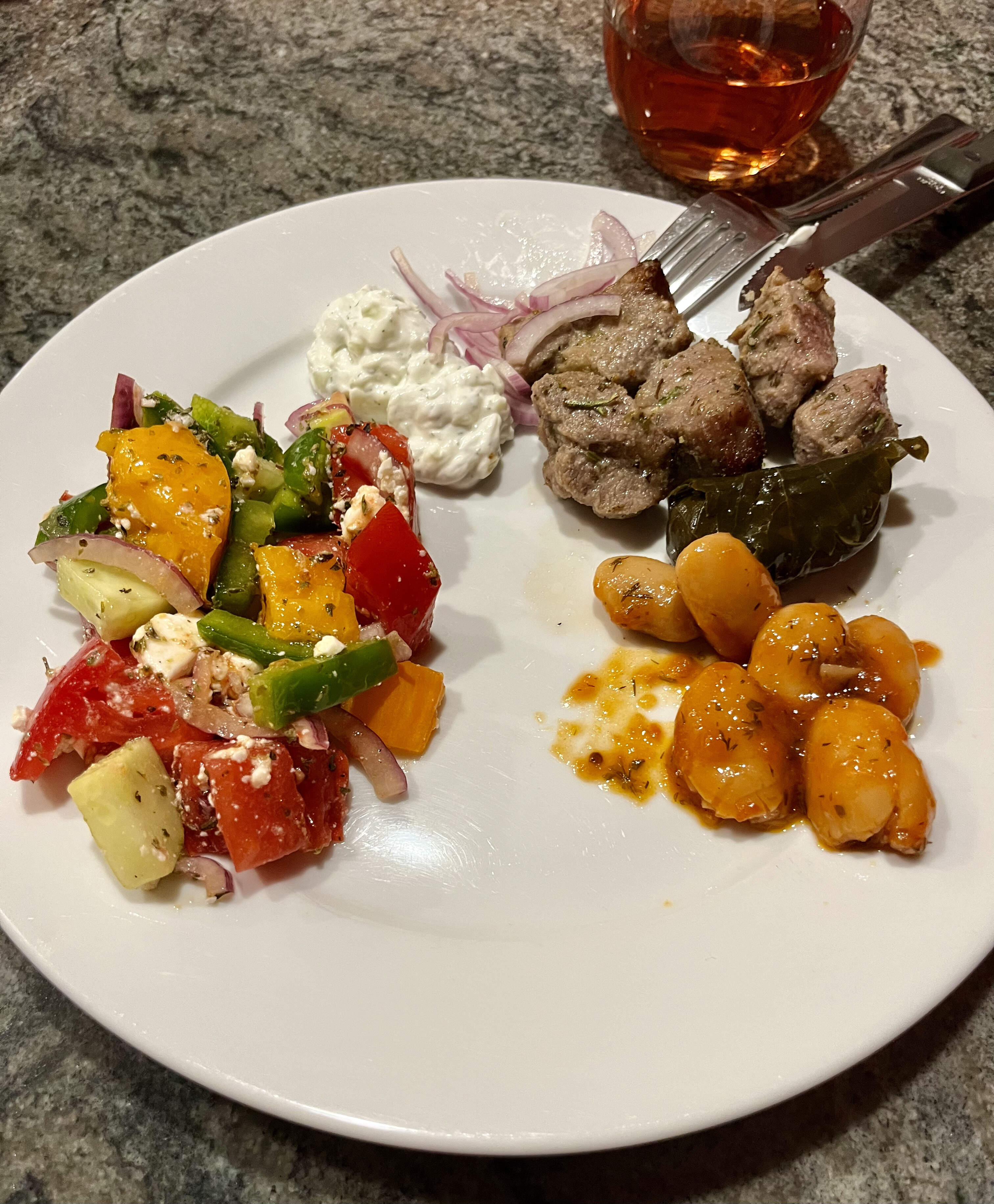 I’d marinated half a boneless pork shoulder cut into chunks for souvlaki, had whipped up a small batch of tzatziki,