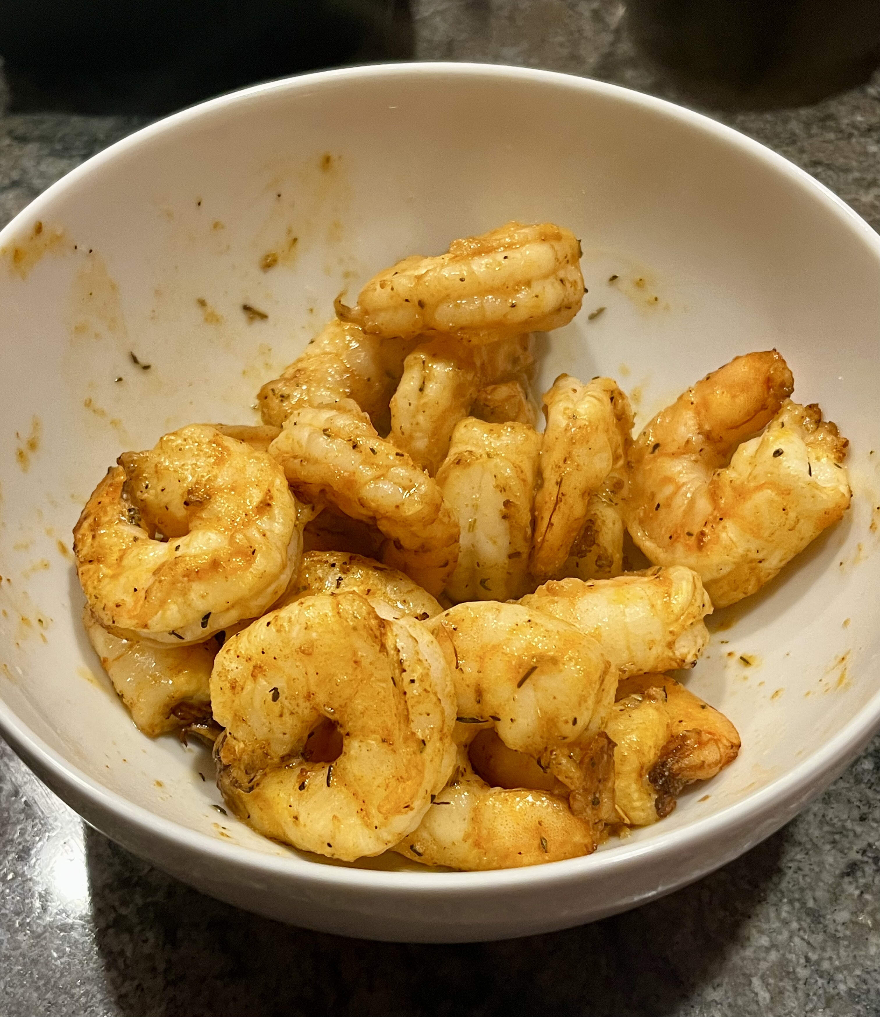 and I air-fried a buncha shrimp tossed in Penzey’s Northwoods seasoning and avocado oil, squirted with fresh lime juice after they came out & served with the hot sauce from the popup event mixed together with the Viet kumquat hot sauce: a very good combo