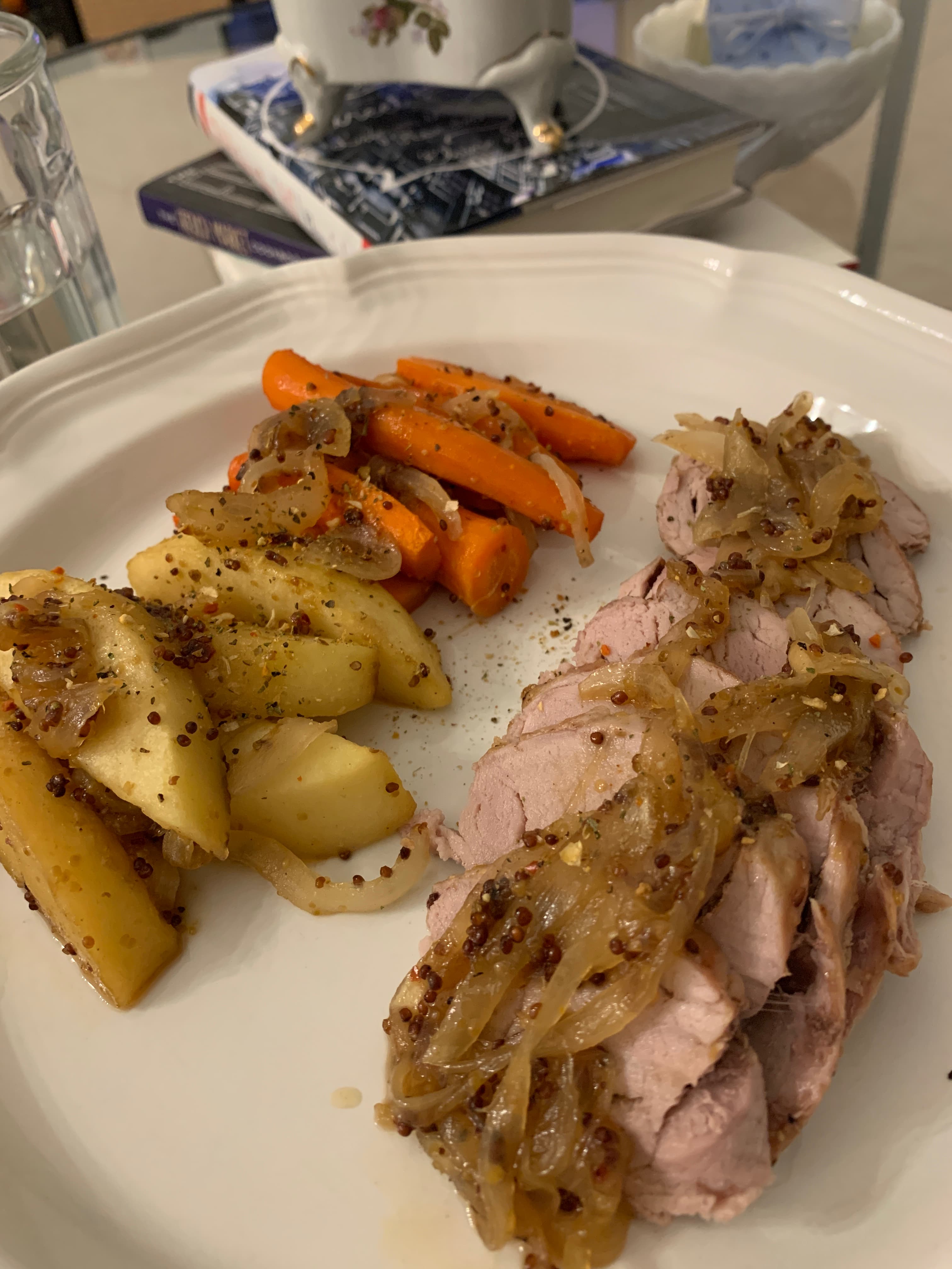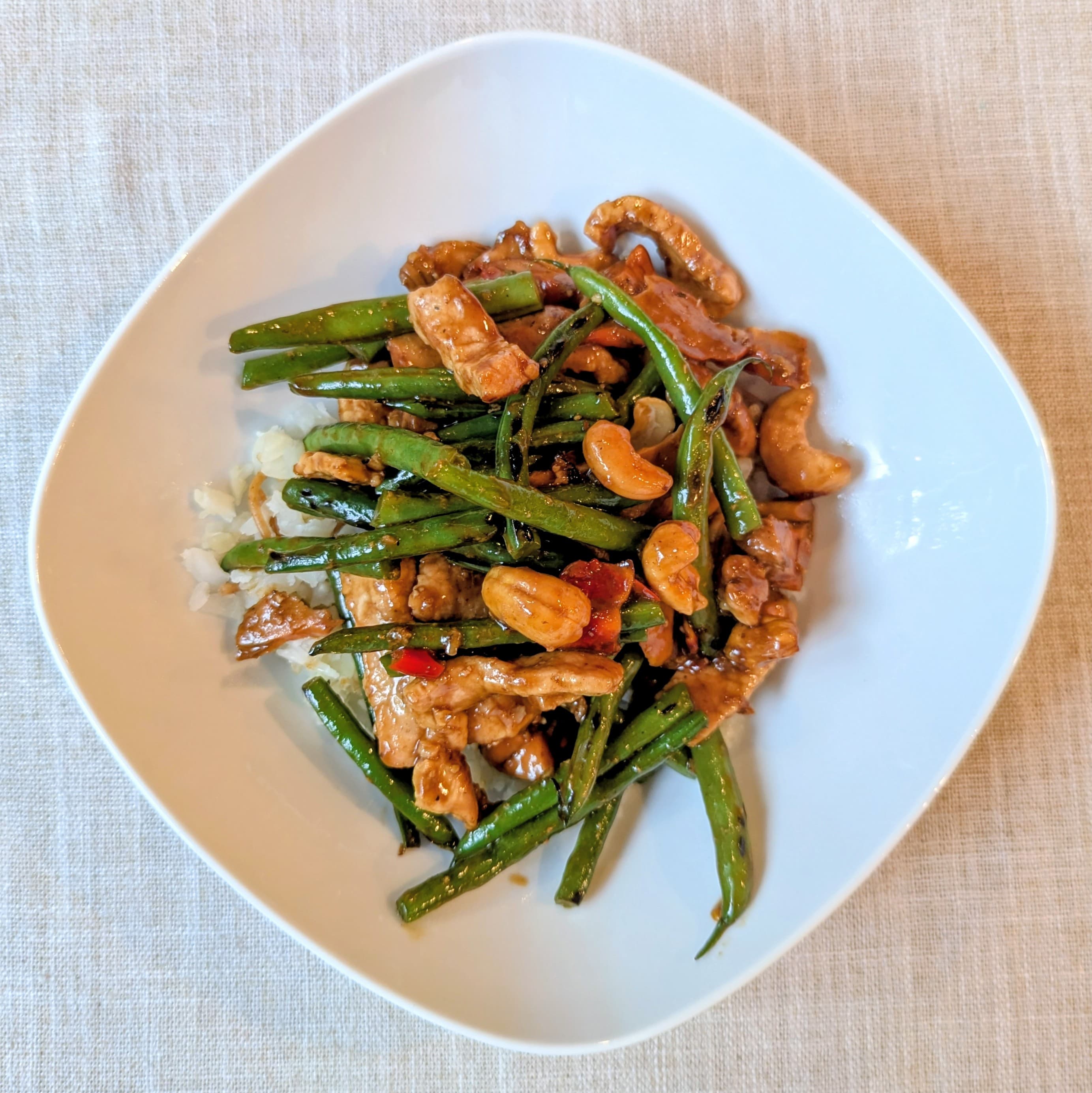 I made pork with green beans [and chicken of the wood mushroom] from a Woks of Life recipe @ottawaoperadiva suggested, served over cauliflower rice mixed with some leftover brown rice pilaf. This wasn’t my favorite WOL recipe – maybe because I’m not a big fan of dark soy sauce. I added some more sugar, oyster sauce, salted chilis, and cashews to balance the flavors. And I used boneless center-cut chops because they’re leaner than shoulder. My DH really enjoyed, but probably not a repeat for me.