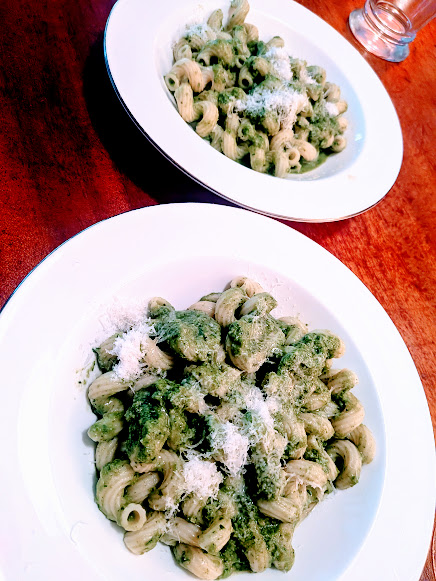 For dinner tonight, I followed a Reels “recipe” for a pasta with peas/mint/scallions/spinach “pesto” (and lots of parm) that turned out great. No measurements, ended up adding more of this and that, but it tasted lovely. Crappy pic - the sauce was actually a beautiful bright green, and owes its creaminess to the immersion blender - no cream (tho it does call for butter to saute the scallions/mint.) With cavatappi and more parm, and a drizzle of this fancy evoo i’ve been seeing all over my feed, but a clerk at a local market really talked me into it; it was pretty tasty, but i think maybe a little too $$ to be a regular thing…