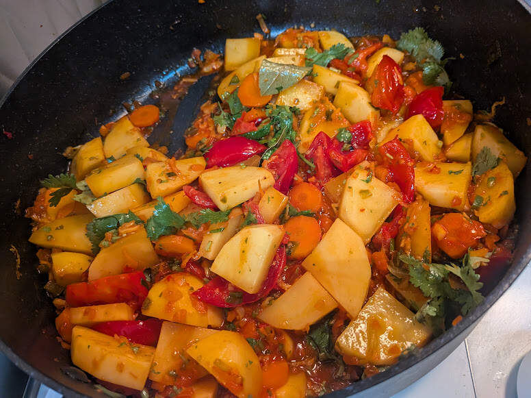 In the kitchen this afternoon - made a big pan of guisado de pollo for tomorrow night’s dinner (pic before the chicken - lots of veg to use up - and added spinach too.) made chicken stock too, and I’ll add some of that in before serving this tomorrow night with rice.