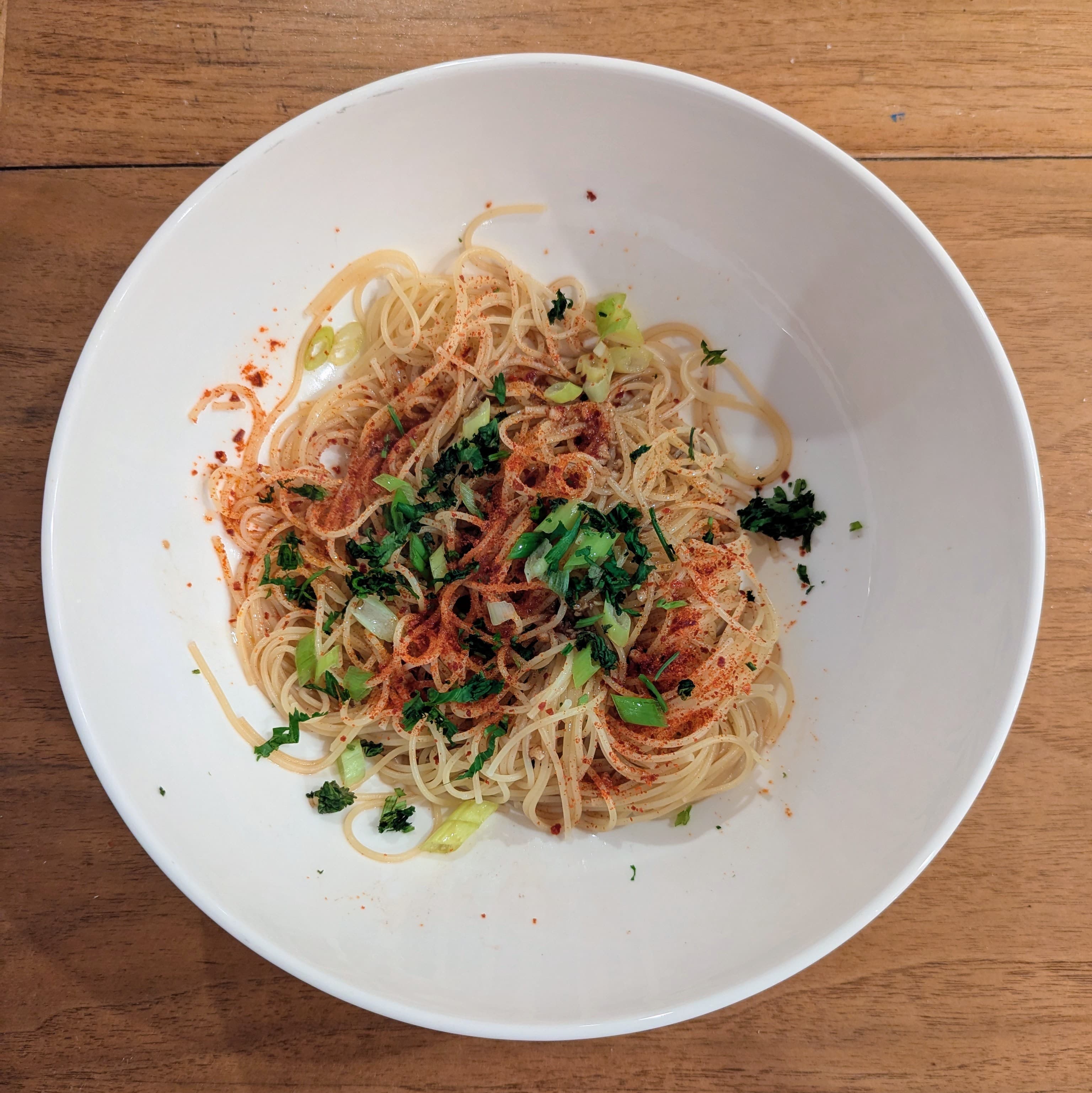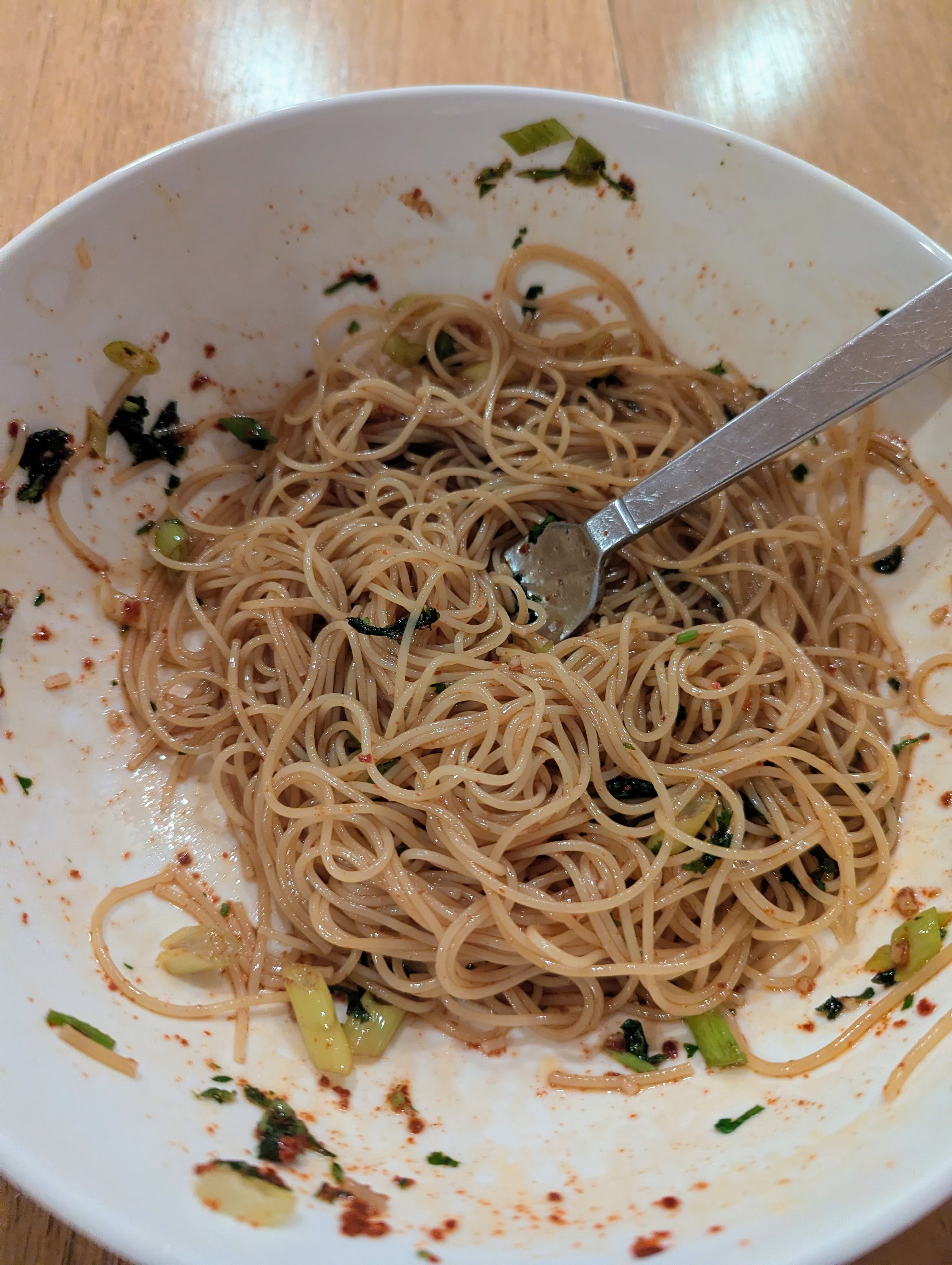 We ate at a Greek festival tonight which was just ok and pretty expensive. Felt snacky later and made yo po mian with the wrong noodles.