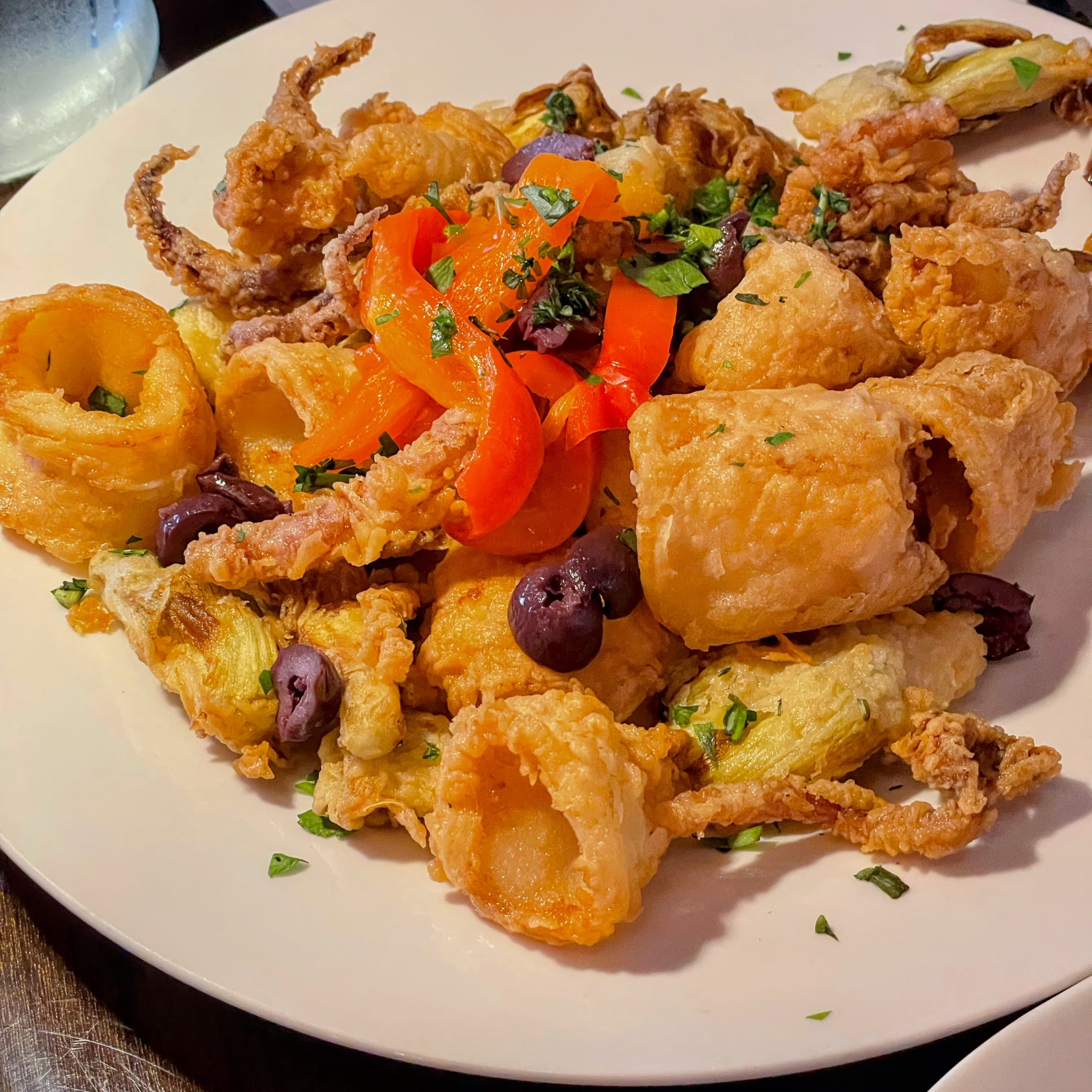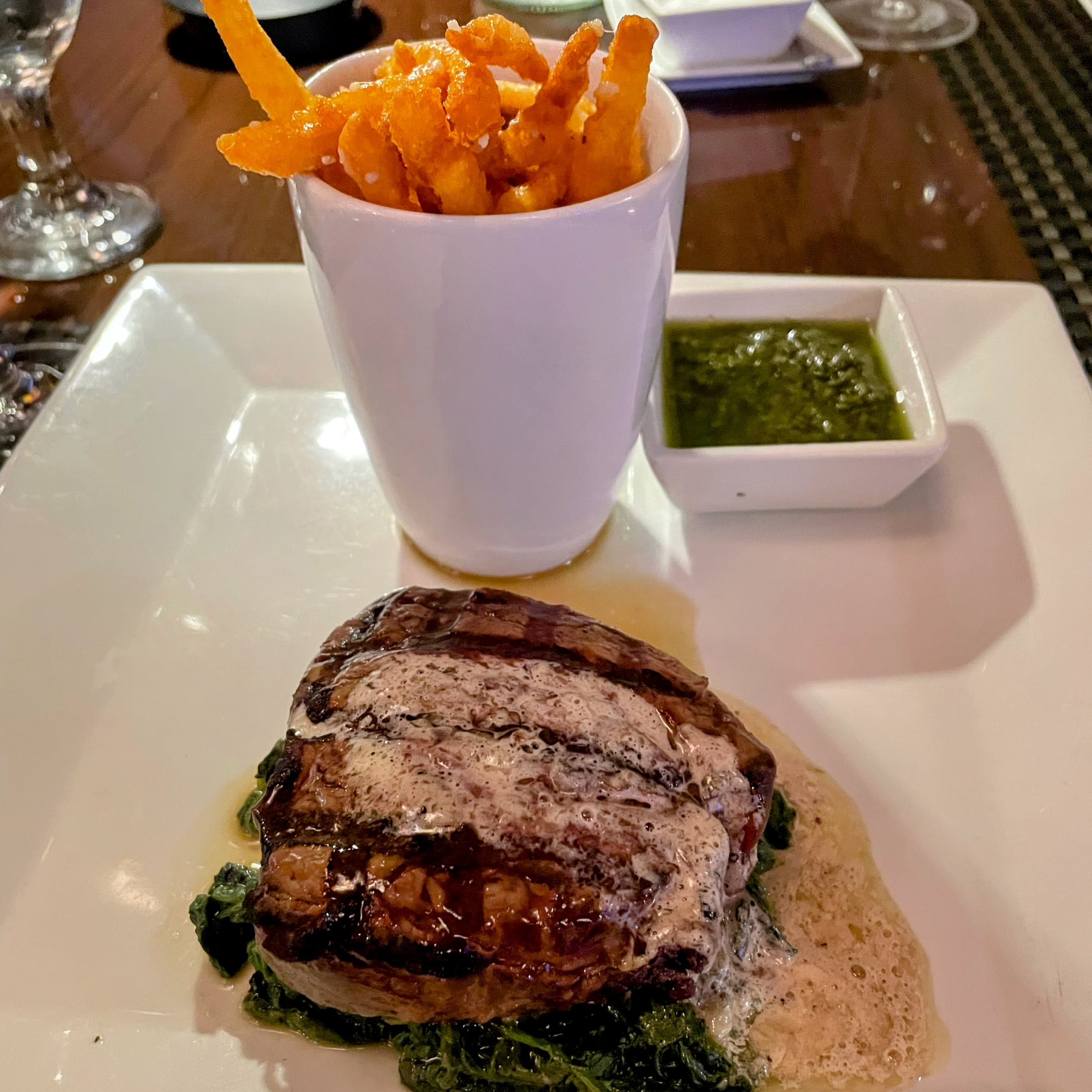 We enjoyed another excellent dinner at F1rst Restaurant, in Hawthorne, NJ, including halibut with pureed cauliflower and chardonnay beurre blanc sauce; grilled filet mignon with crispy Parmigiano-truffle fries, spinach, foie gras butter, tarragon chimichurri; crispy calamari and artichokes with roasted red peppers, kalamata olives, lime “Caesar” aioli; grilled octopus with potatoes, roasted red peppers, capers, olives, romesco sauce; It all went great with a couple of excellent cabernets.