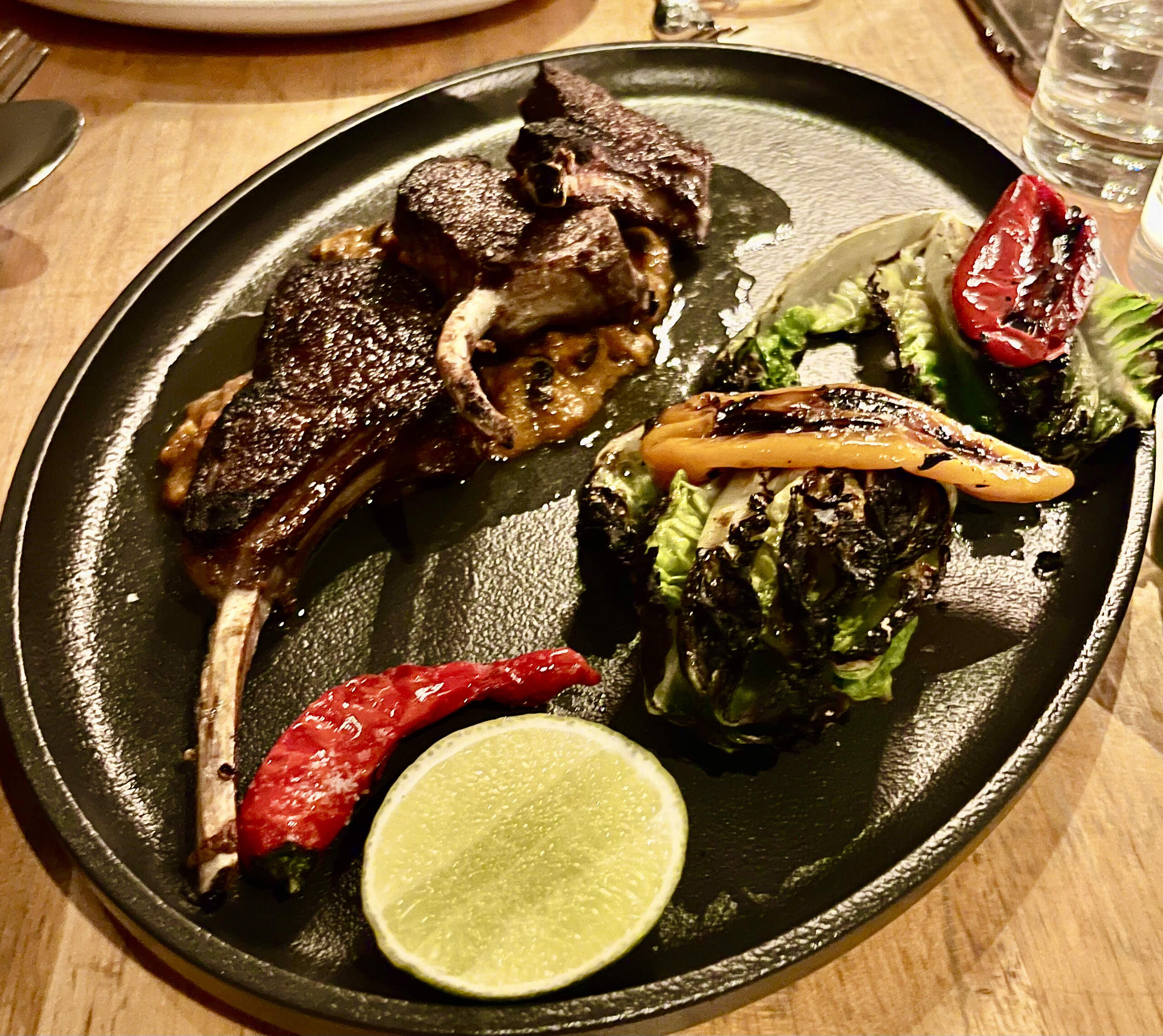 For our main we split the Thai-spiced lamb chops with tomato shiitake chutney. The Thai flavors were there, the ‘spice’ not so much. The chops were a perfect med-rare, very meaty and juicy, thanks to a decent amount of fat, and the tomato shiitake chutney was wonderful.