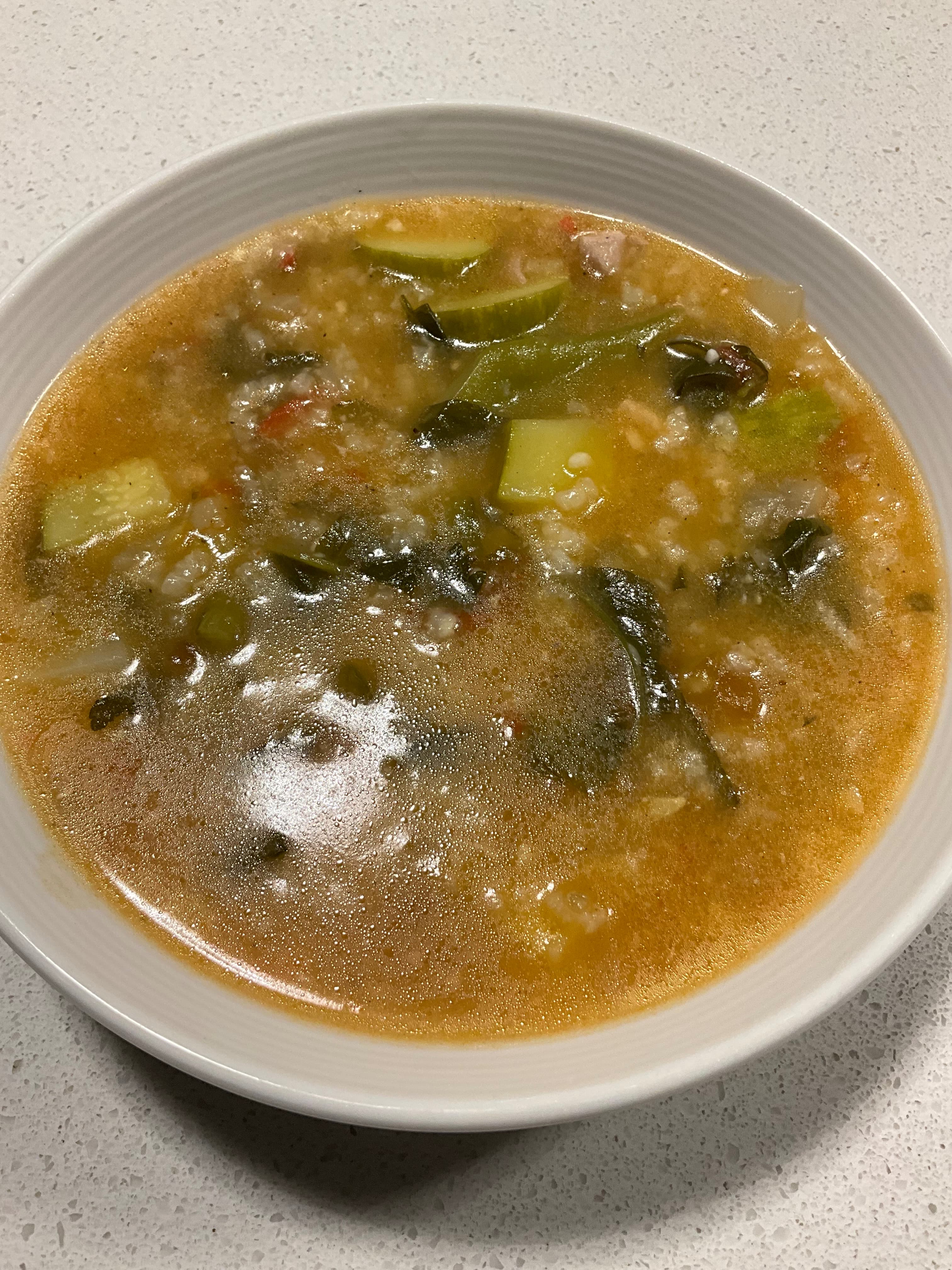Summer minestrone with the last vegetables from the garden. Very satisfying on a wet and breezy night https://www.theguardian.com/food/2023/jul/24/summer-minestrone-chicken-rice-recipe-rachel-roddy