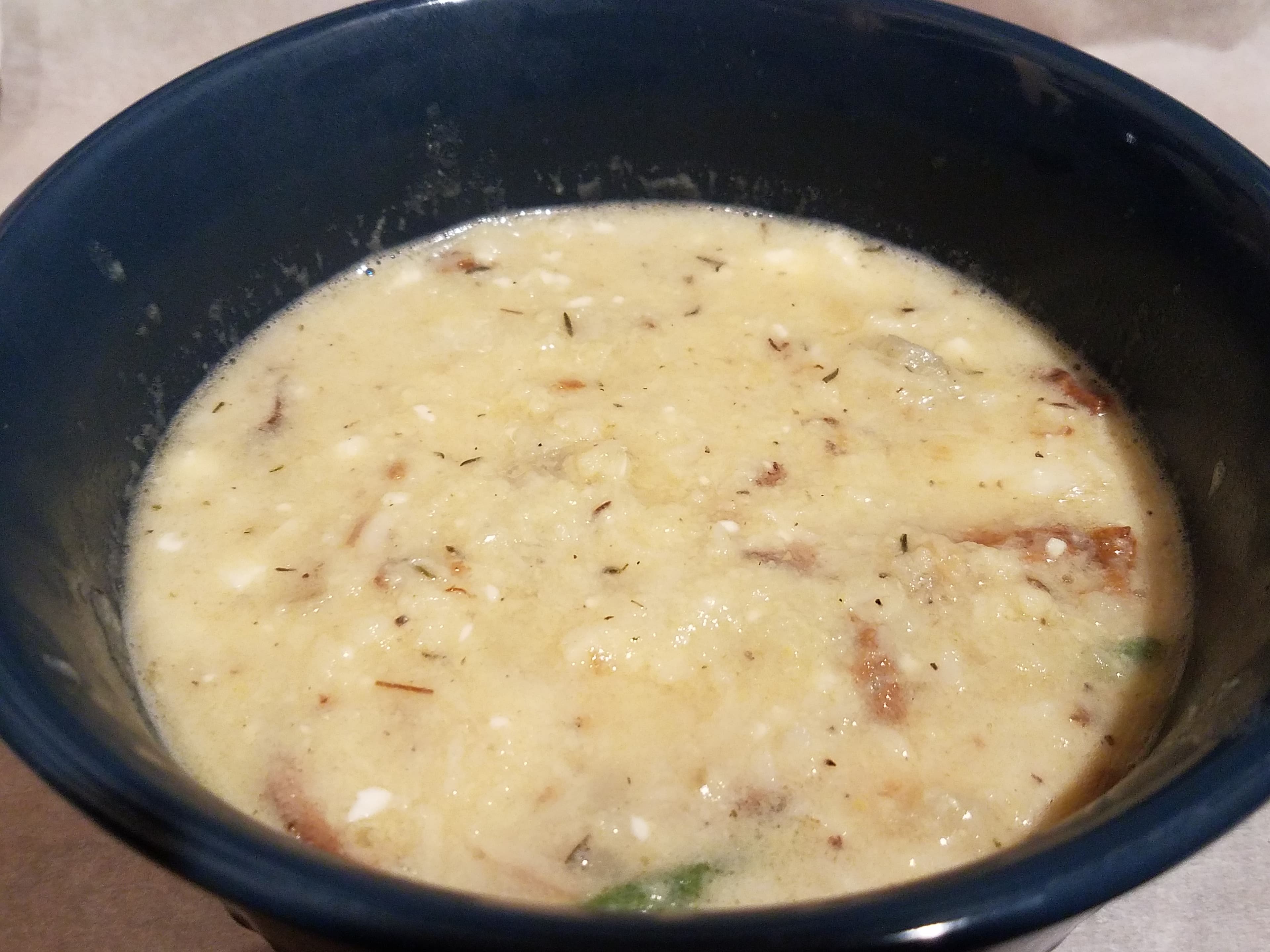 I simmered the leftover fish pie from a couple of days ago with some stock (BTB chicken) to make a chowder.