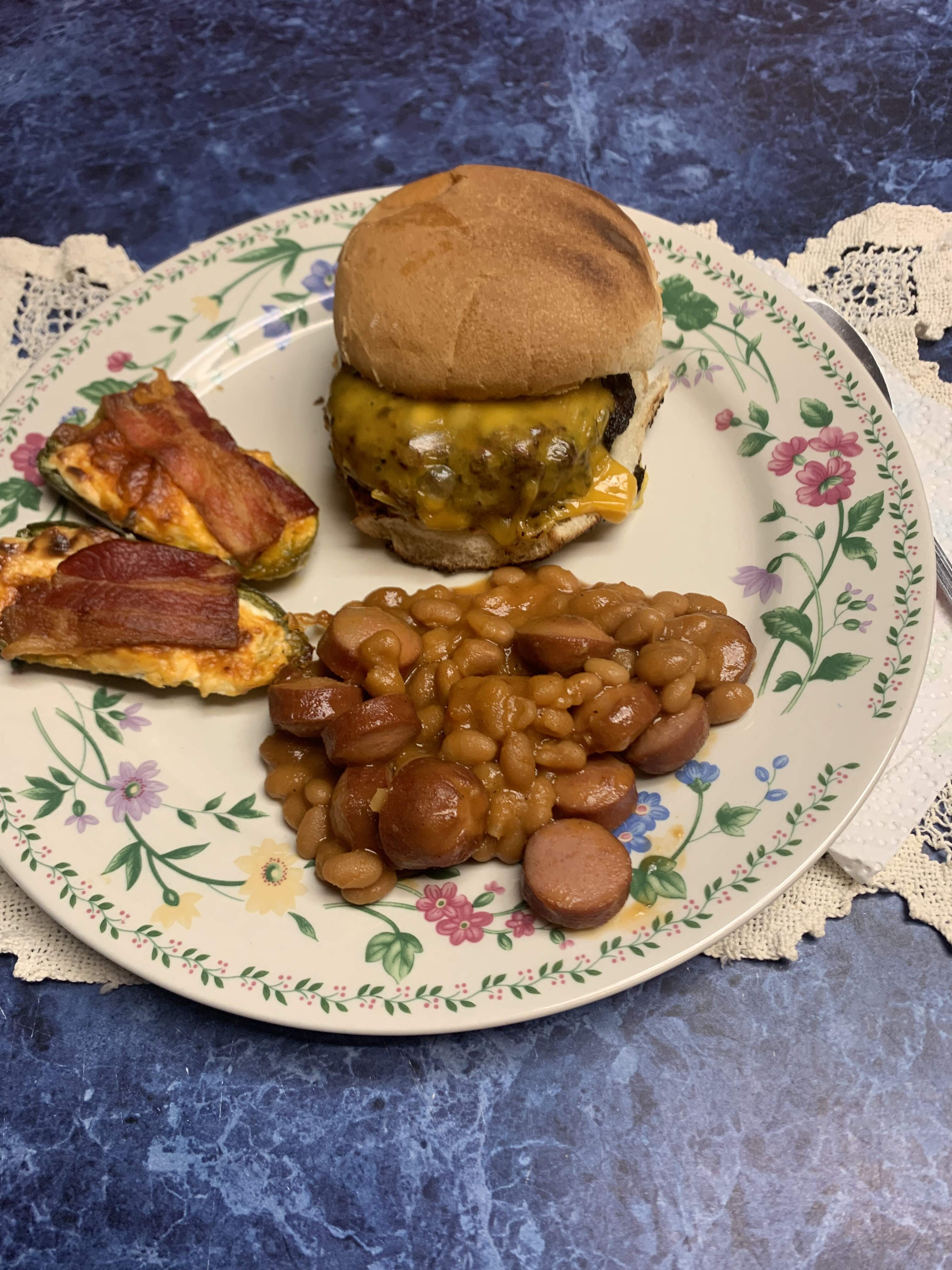 Been on a burger kick lately. Out of Montreal steak seasoning so used this stuff he picked up somewhere. About the same. Doctored up beef franks and beans. The mere mention of jalapeño poppers on the Thanksgiving 2025 thread reminded me that I hadn’t made them in awhile. Solid meal and one we both agree on.
