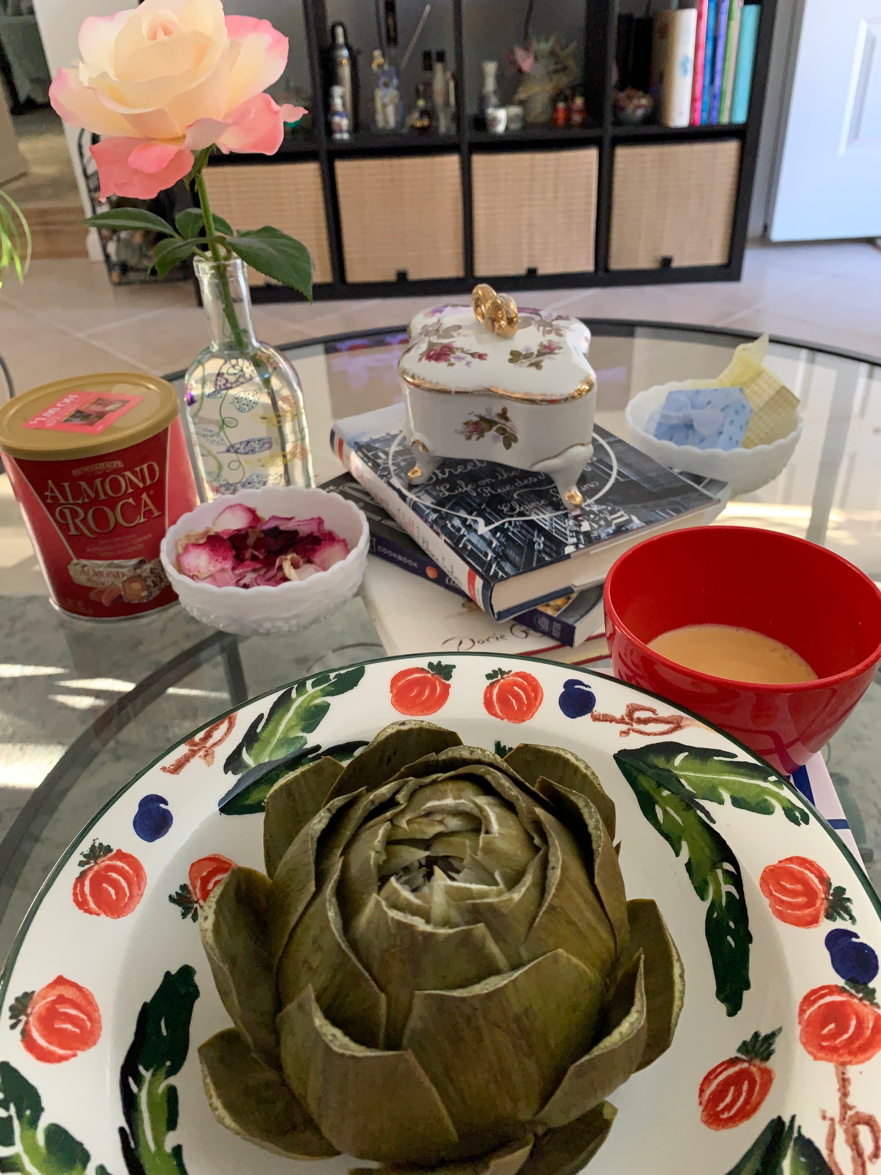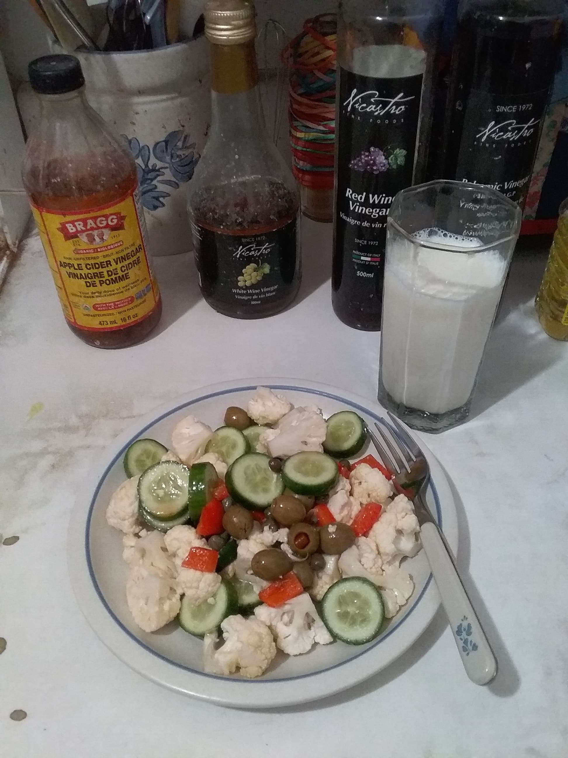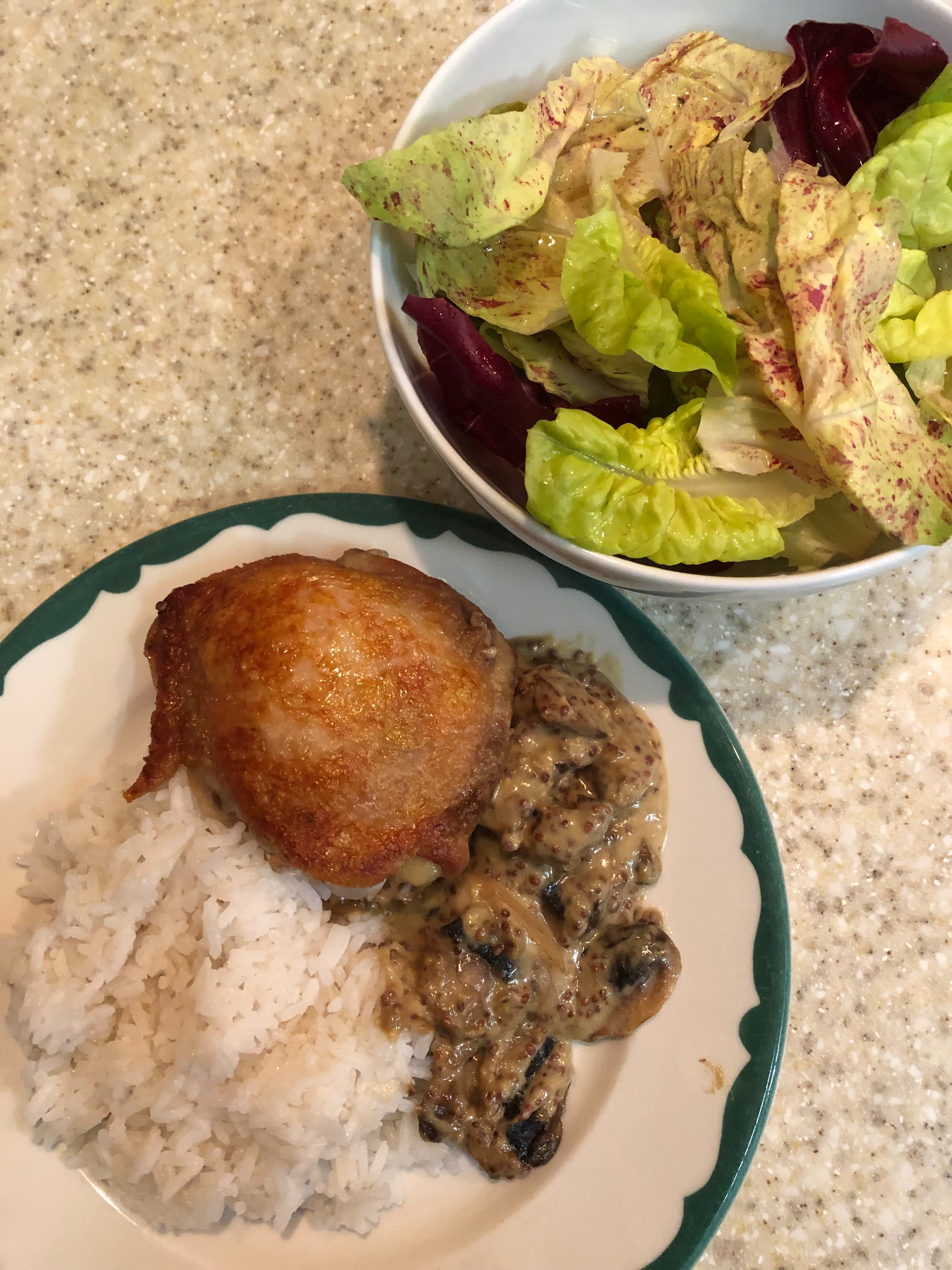 I have no idea what came over me but I cooked tonight instead of making snacky dinner. Chicken thigh with Dijon mushroom cream sauce - I got the skin so crispy I just kept the sauce underneath - with jasmine rice and salad.
