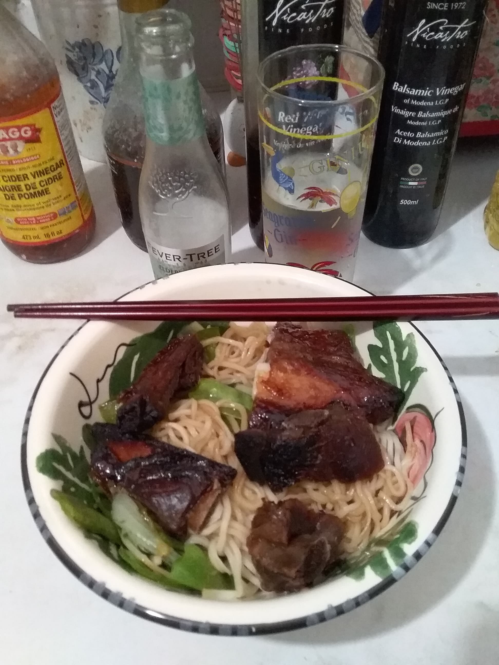I went on a lovely walking tour of Chinatown yesterday but the one hour tour ended up lasting two and a half hours. Our tour guide is 2nd generation Canadian and his family history is intertwined with the history of the Chinese Canadian community in Ottawa so he had lots of history to cover. I stayed on after the tour to pick up some Thai chilis and cilantro for dinners this week then I swung by the bakery to pick up some egg rolls for dinners the next few days and a red bean bun for breakfast this morning. So dinner last night started with a couple of egg rolls then I had a pork chow mein as a main then a chocolate parfait for dessert.