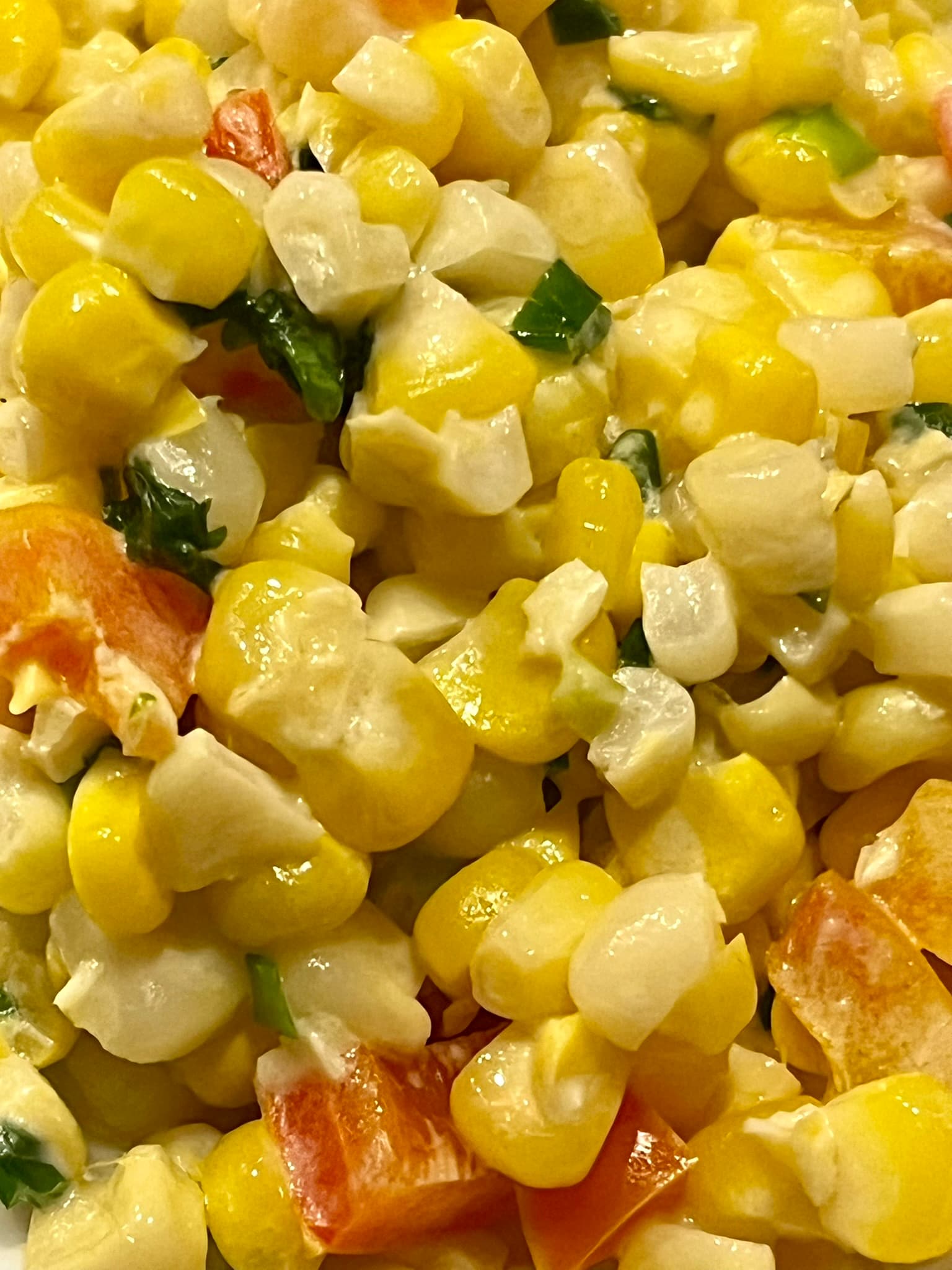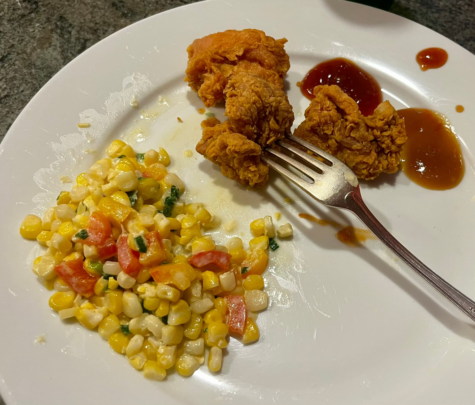 I made a side dish with my frozen summer corn with scallions, cilantro & the remaining half of a grafitti pepper I had in the crisper, plus a Serrano pepper we probably didn’t need, bc the chicken had quite the kick, and the corn provided no relief for our tongues ![]()