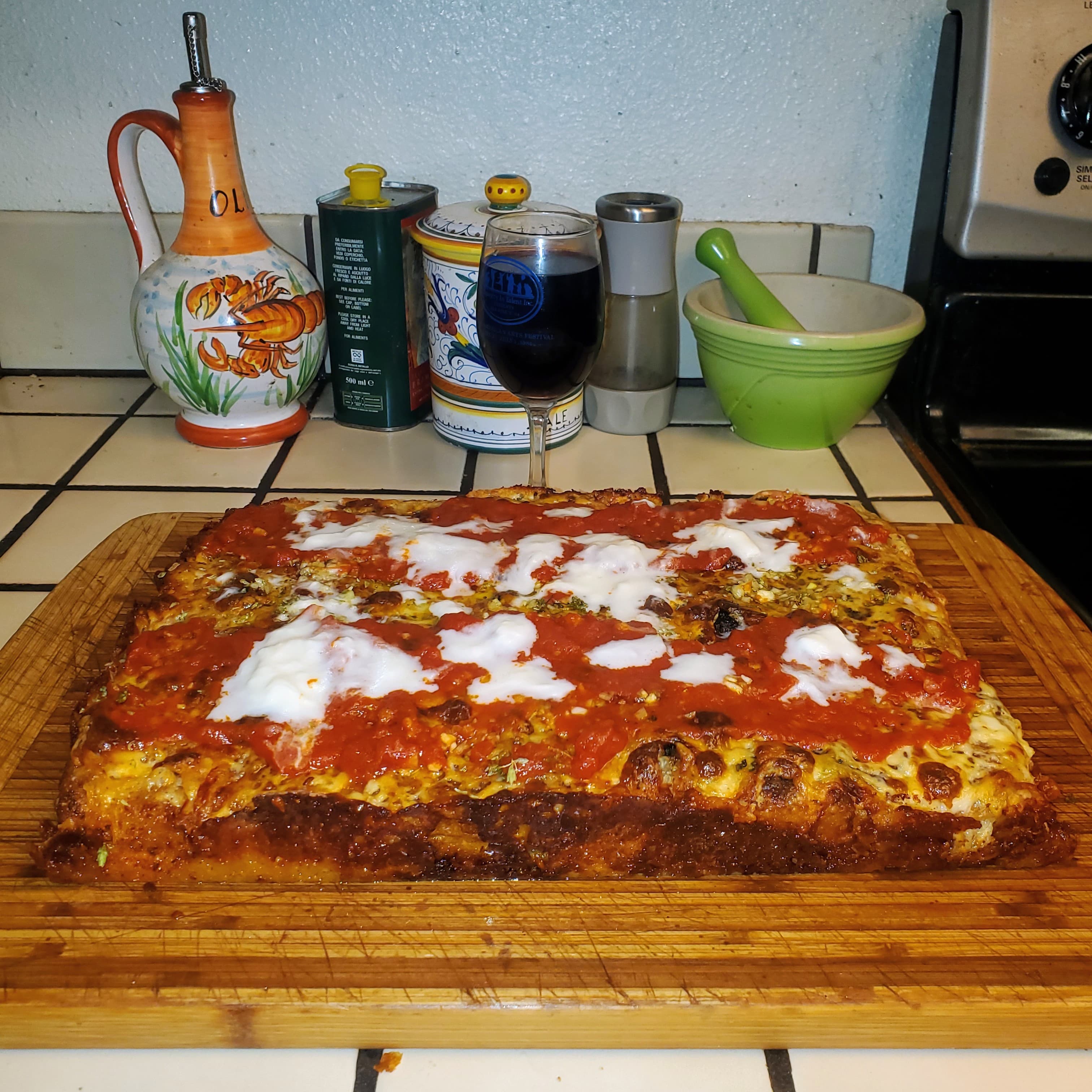Start of the new pizza season. Cooked indoor. In the home oven. Pan pizza