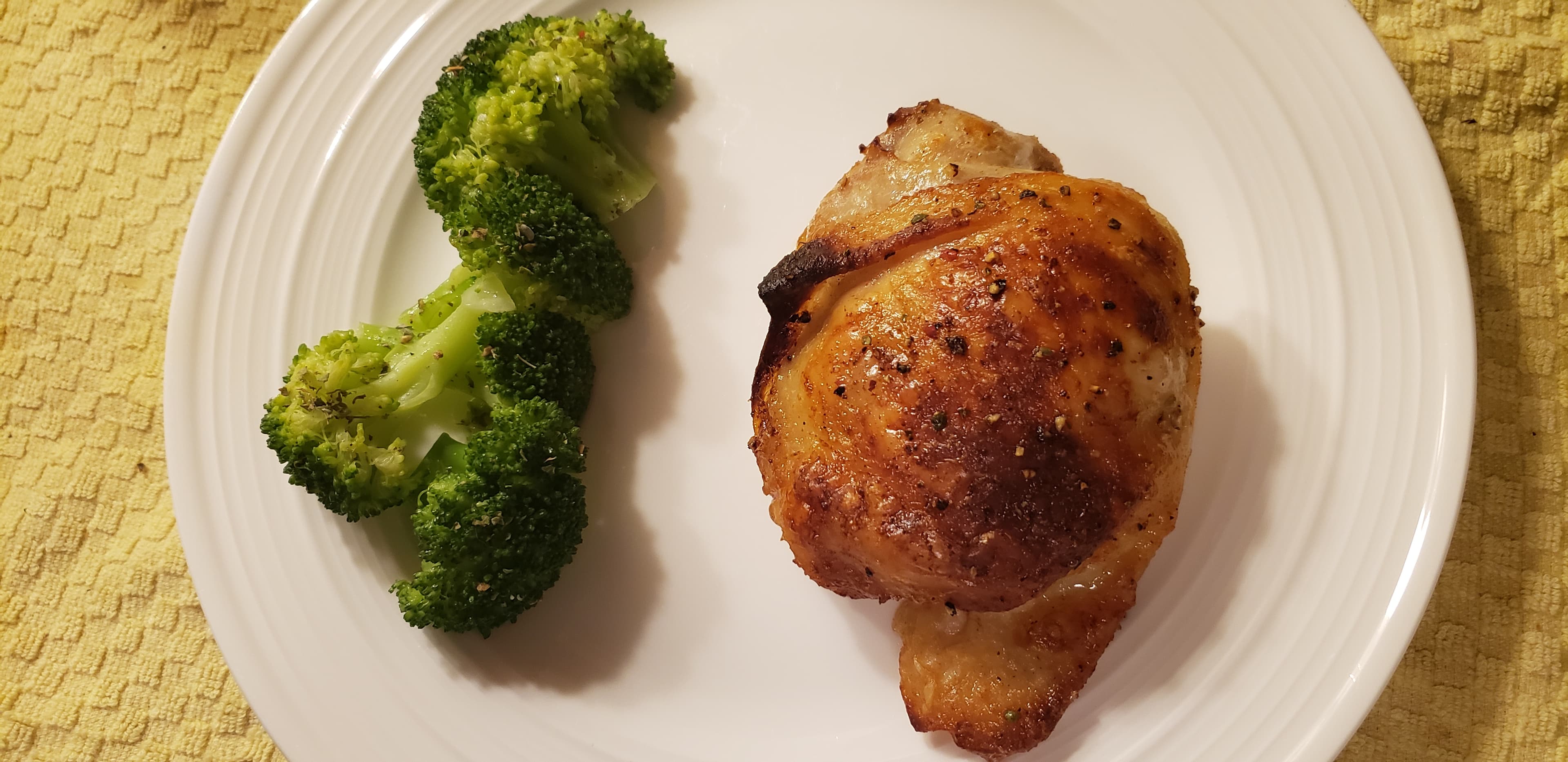 Steamed broccoli with butter, s/p, and dried marjoram.