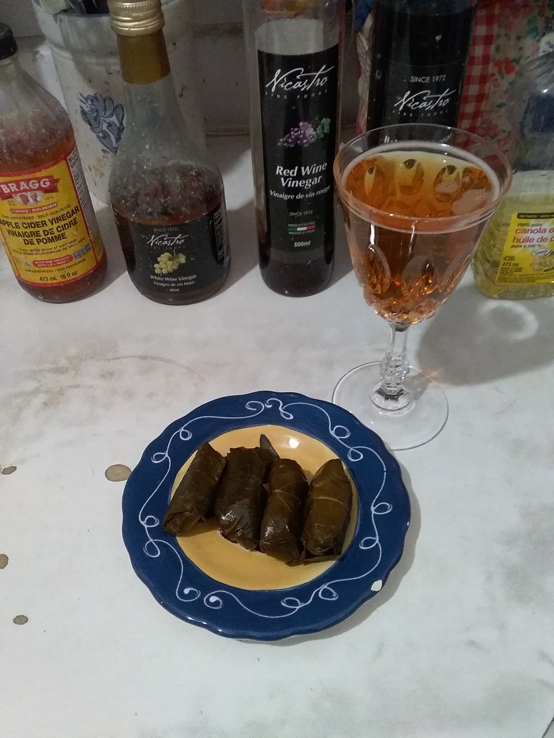 Dinner started off with dolmades and apple cider while watching the pre-game show.