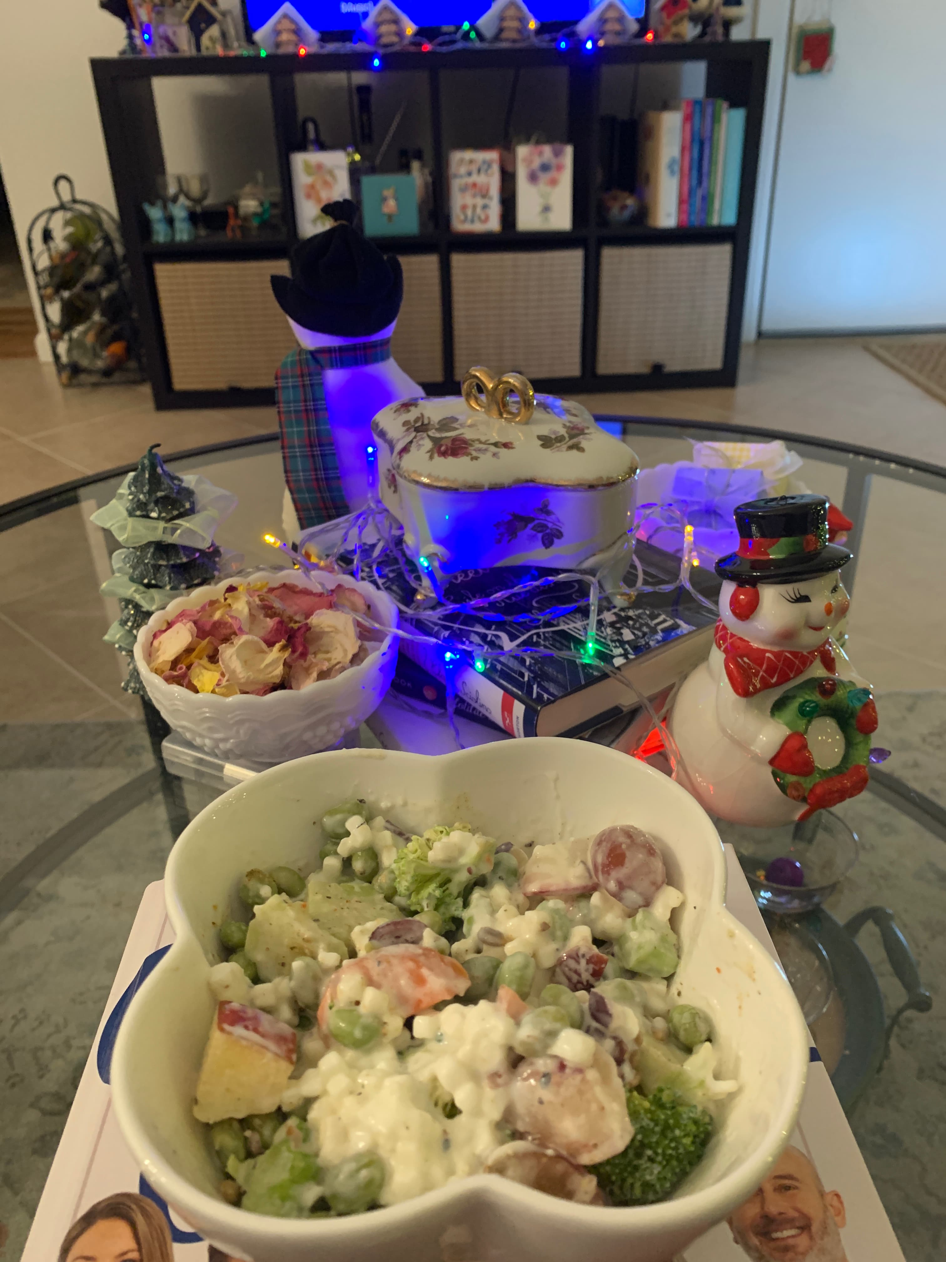Not much on the agenda today, so I spent a LOT of time watching the hellions wrassle each other around the living room, and chasing one of them out of the kitchen sink more times than I cared for. Jonesy flew off the stove when he apparently got on the still hot burner I’d blanched the broc on