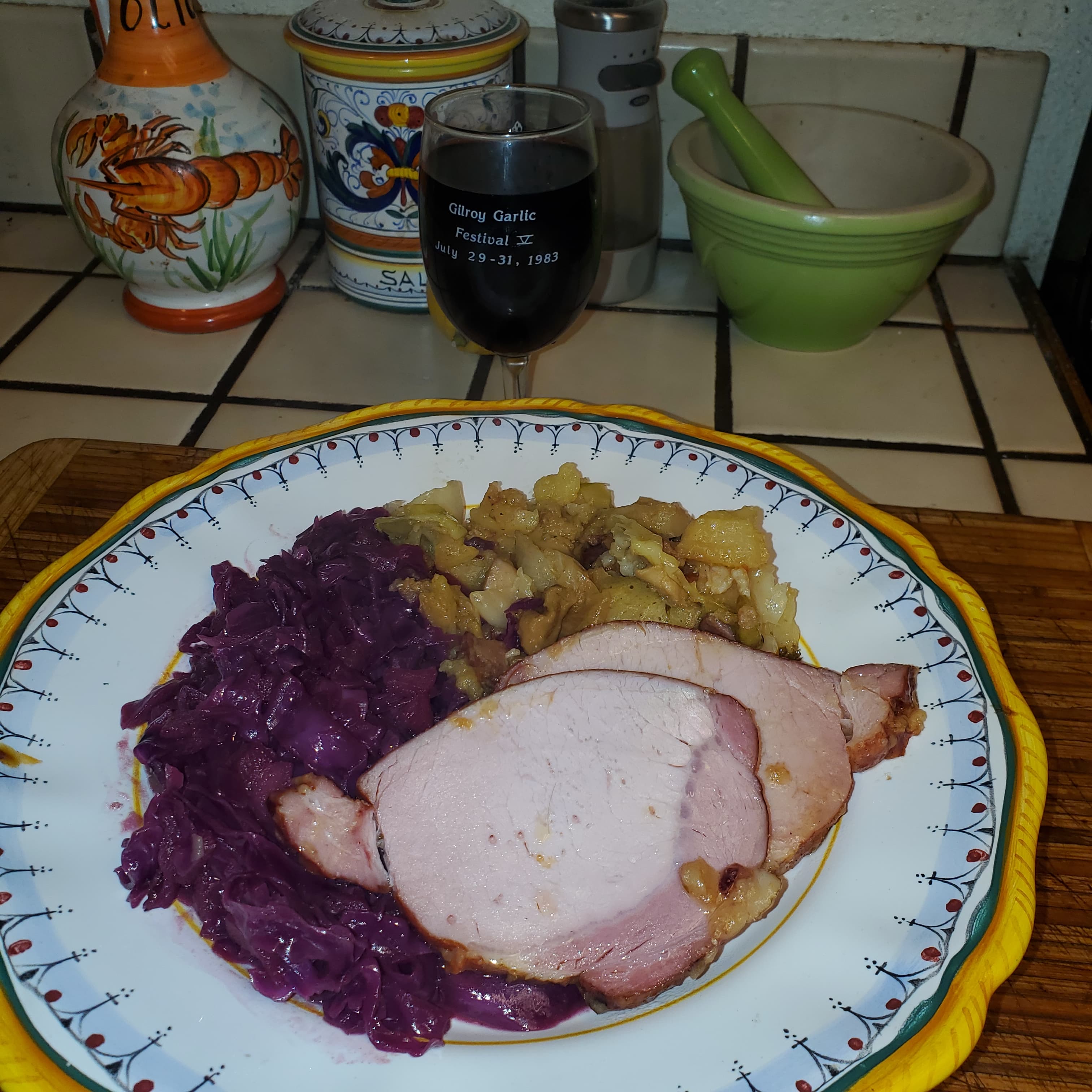 Dessert was a slice from a Gingerbread and Apple Loaf that interested me because of grating the apple vs finely chopping (which I think I’d prefer) and took WAY longer to bake than her recipe said (55 min vs her 35 min). The batter was way too thin and literally poured into the loaf pan. But after a full bake at 55 minutes, it was pretty good (although it did try and fall apart as I removed it from the pan, but I was able to keep it together). Since she had no measurement, I grated 1 large apple vs her 2 medium.