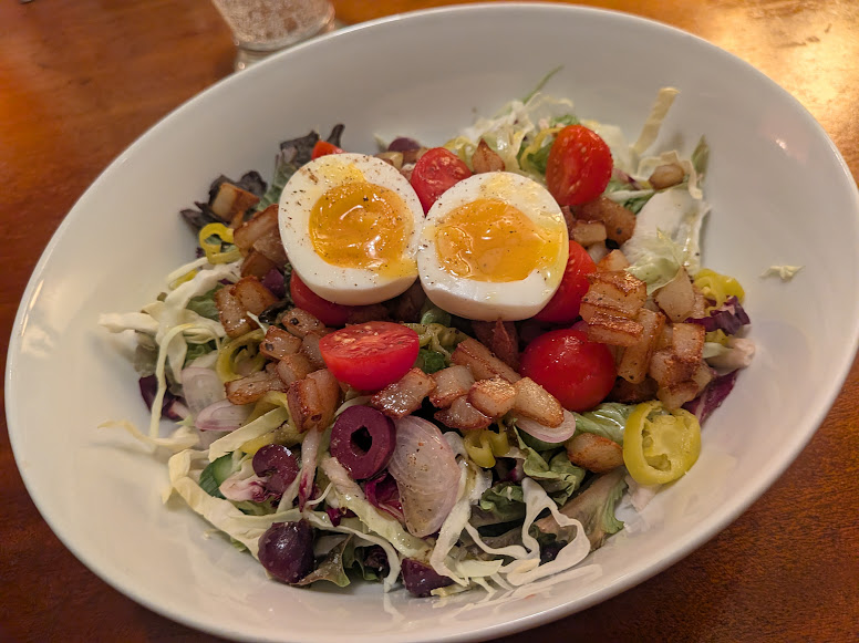 Speaking of salad — someone dropped a bagged Caesar salad kit in the Wegners parking lot, and we didn’t see anyone looking for it…. so we took it home, as fate clearly wanted us to have it. Having never bought a salad kit in my life, I’m curious to see what it’s like. We have yet to try CK’s Caesar dressing, so the stars are clearly aligning for us. Might have it with our cheeborger meal Tuesday in lieu of fries.
