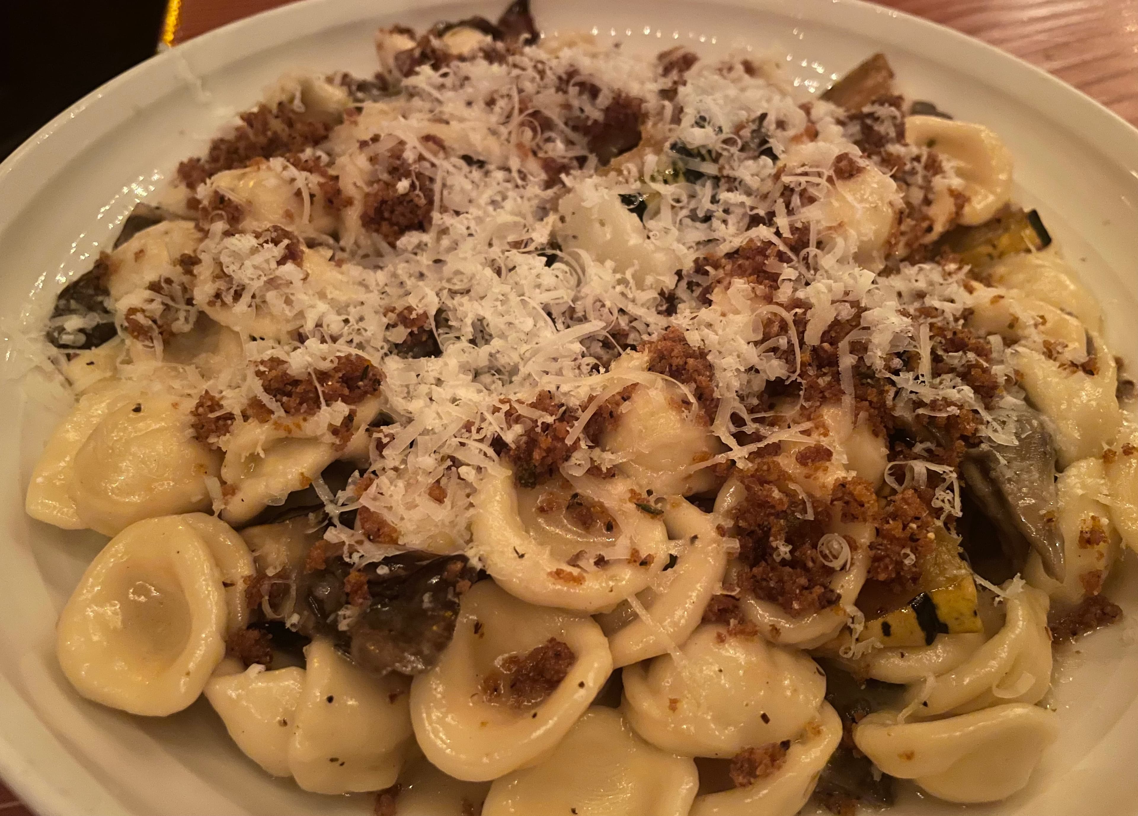 Orecchiette, delicata squash, maitake mushrooms, swiss chard, banyuls vinegar, 24-months aged parmesan, thyme breadcrumbs