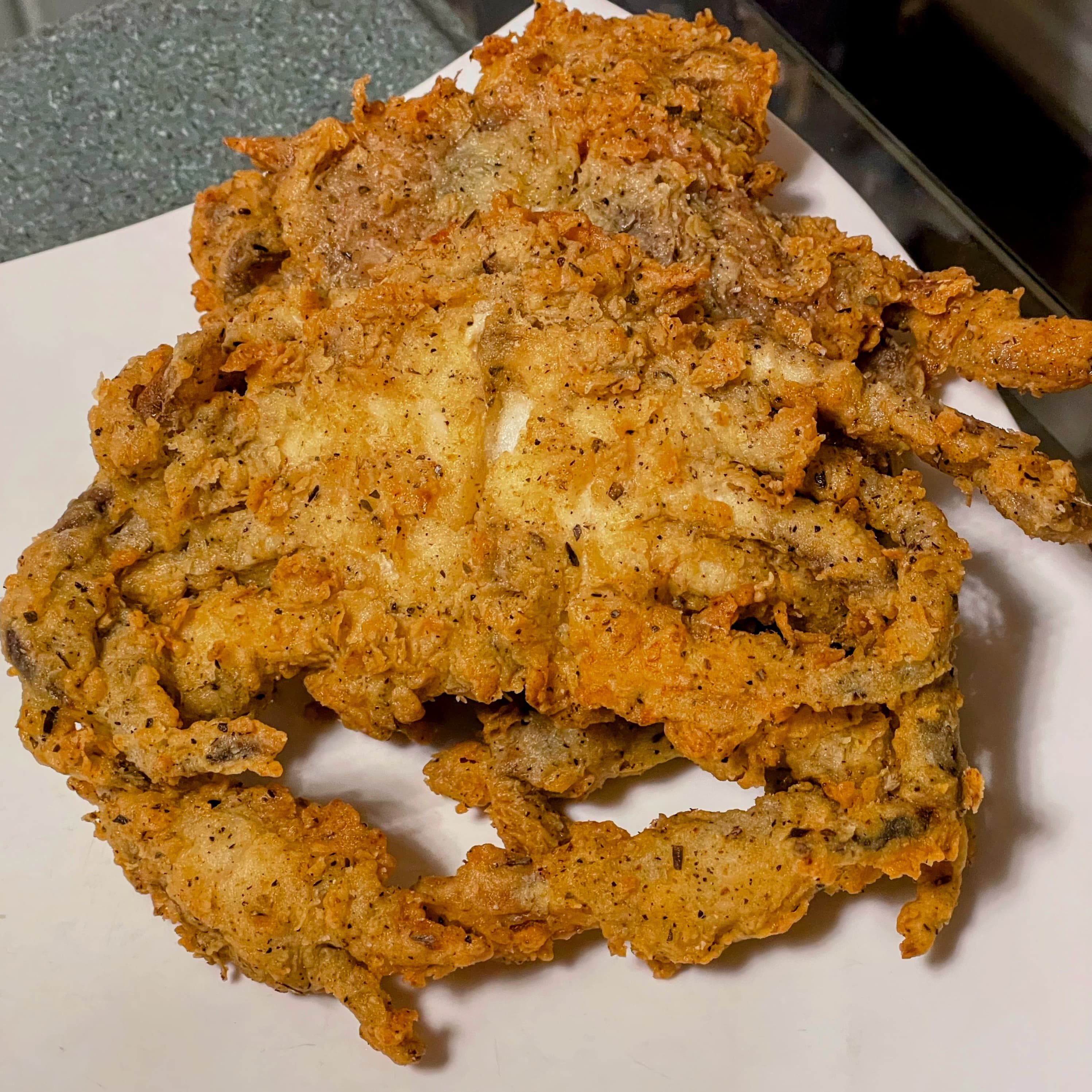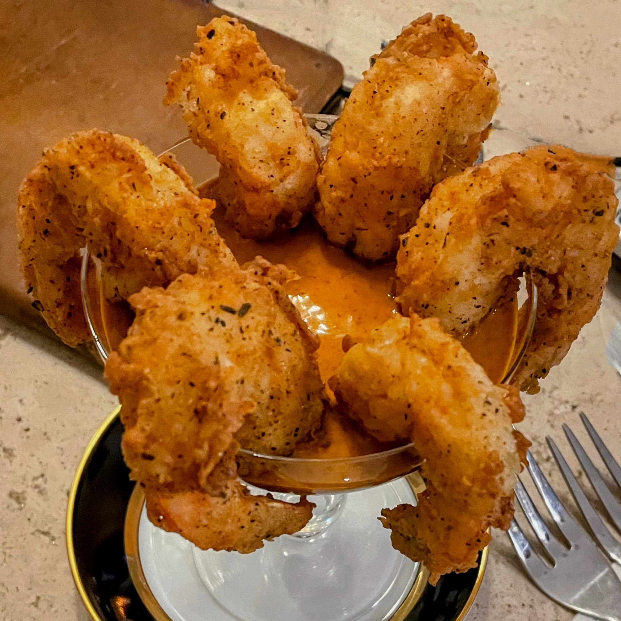 Mrs. P does not like turkey so she made delicious fried soft shell crabs, that were vacuum sealed over the summer. She also made fried shrimp cocktail with homemade cocktail and creamy horseradish sauce. We had TJ’s sweet potato fries as a side dish. For an appetizer Mrs. P made Jamon stuffed with Humboldt fog cheese, toasted almonds, and reduced balsamic. We started off with an espresso martini and enjoyed an excellent red blend with the main course. We have some leftover soft shell crabs and fried shrimp with some new sides dishes for dinner tomorrow.