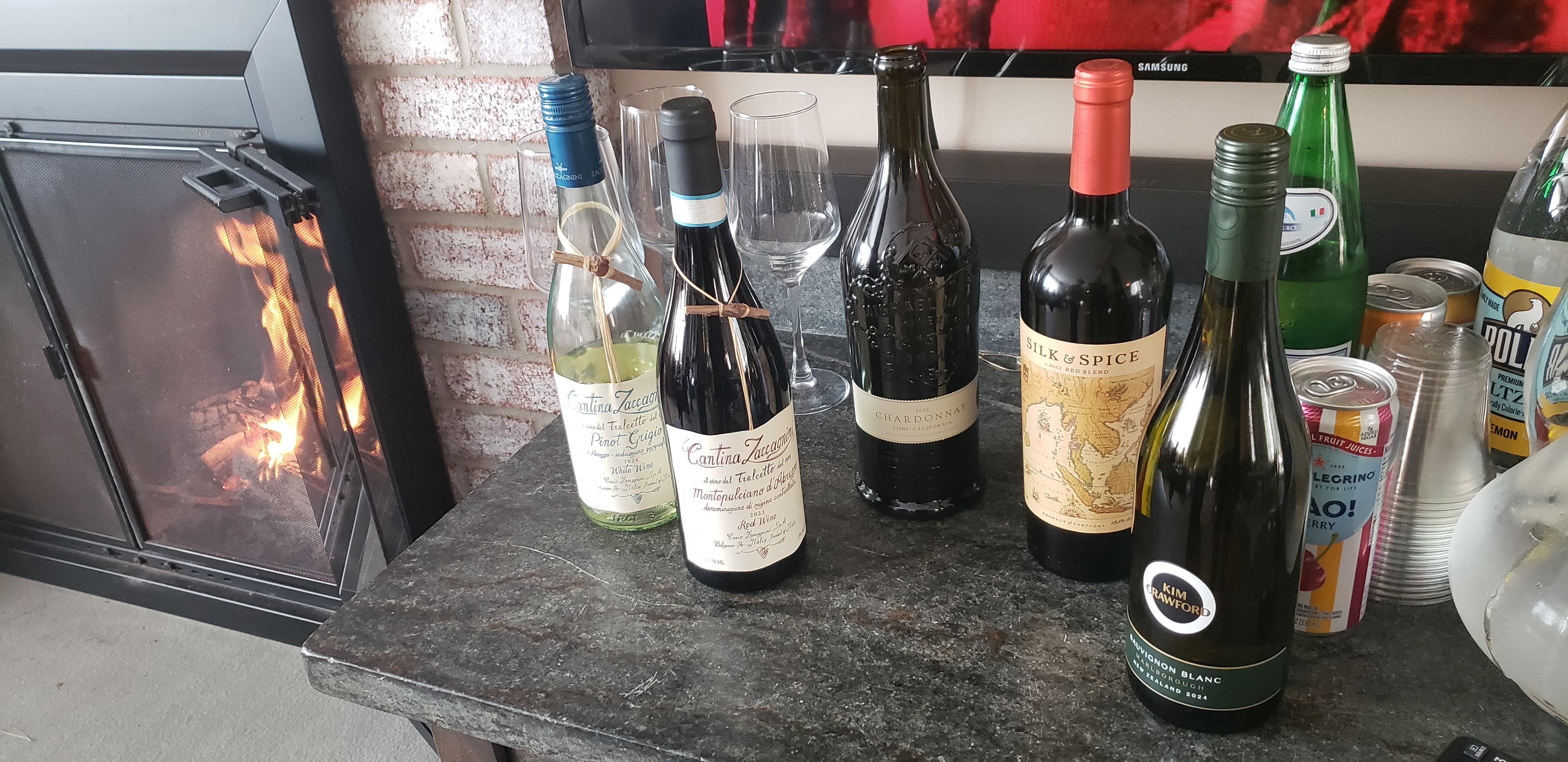 Wine choices were multiple reds and whites: Cantina Zaccagnini Pinot Grigio, Cantina Zaccagnini Montepulciano d’Abruzzo, Michael David Vineyards Chardonnay, Silk and Spice Red Blend, and Kim Crawford Sauvignon Blanc. There was San Pellegrino fizzy water for the non-drinkers.