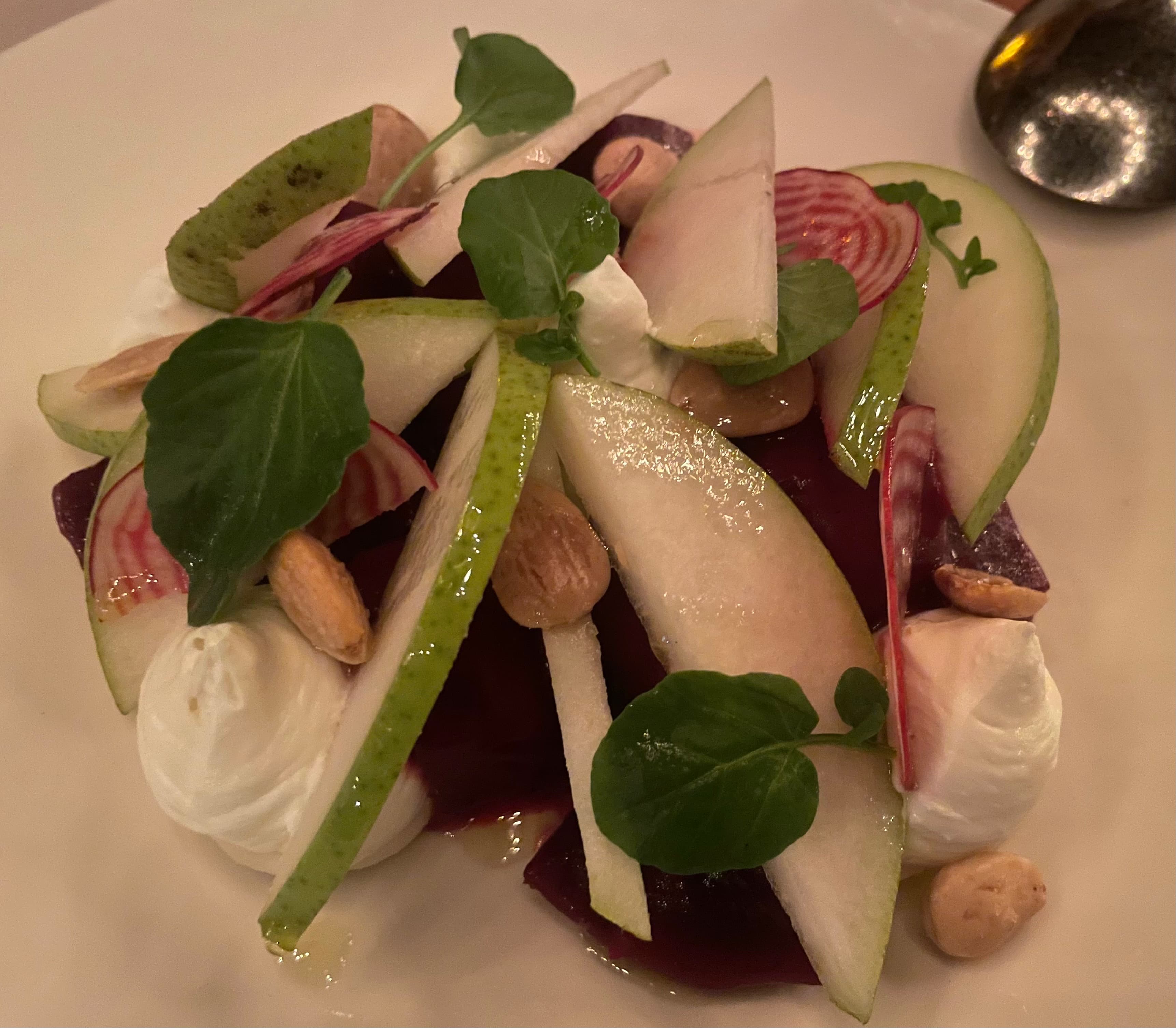“Tutti Frutti Farms” roasted fall beet salad, “frog hollow” pears, whipped goat ricotta, salted marcona almonds, watercress
