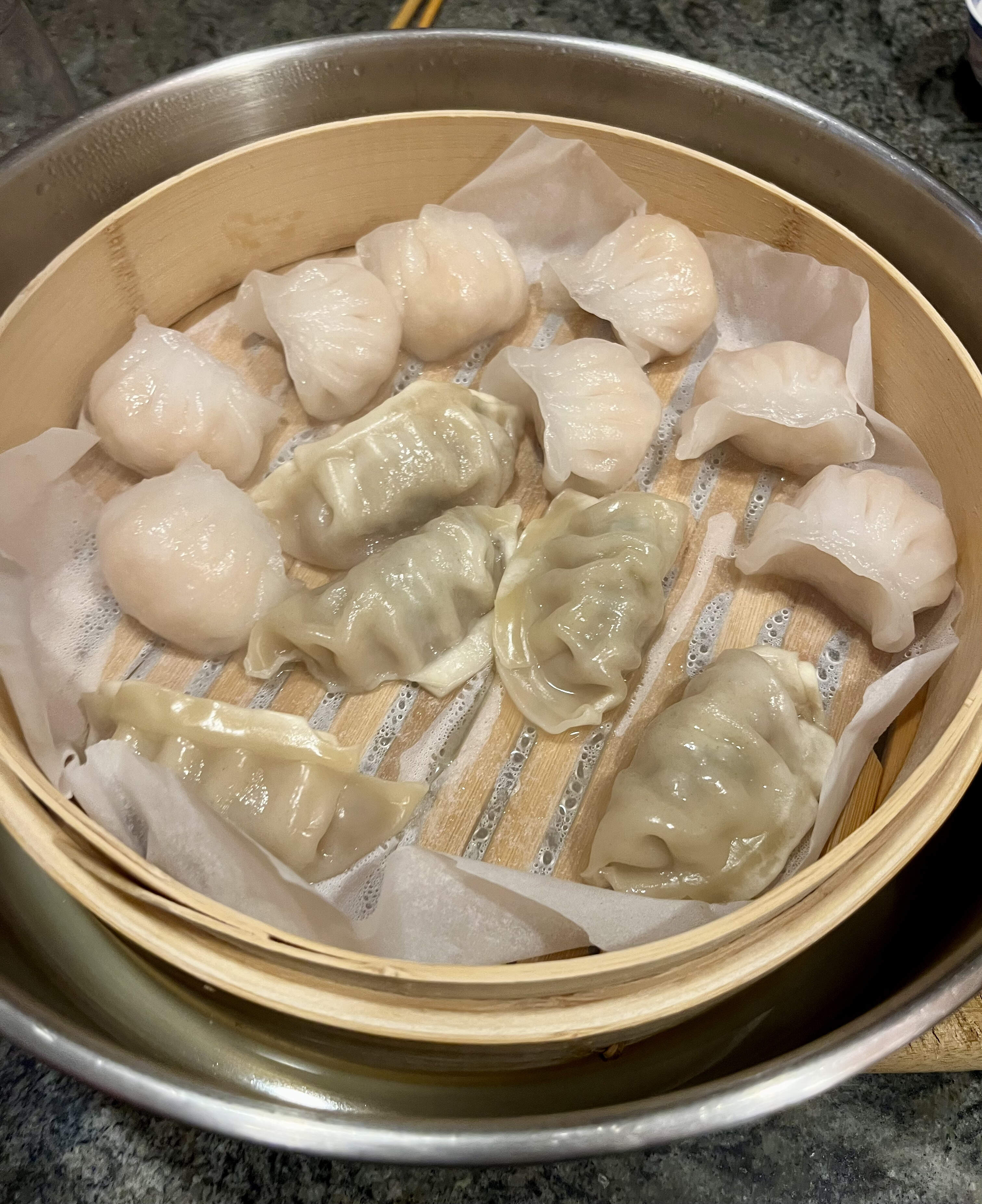 Came home a lil peckish, so I steamed some har gow & beef dumplings for us.